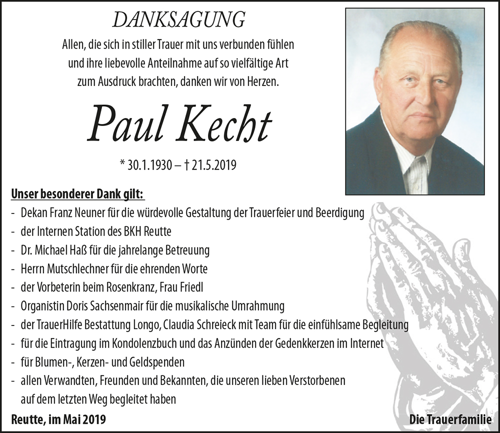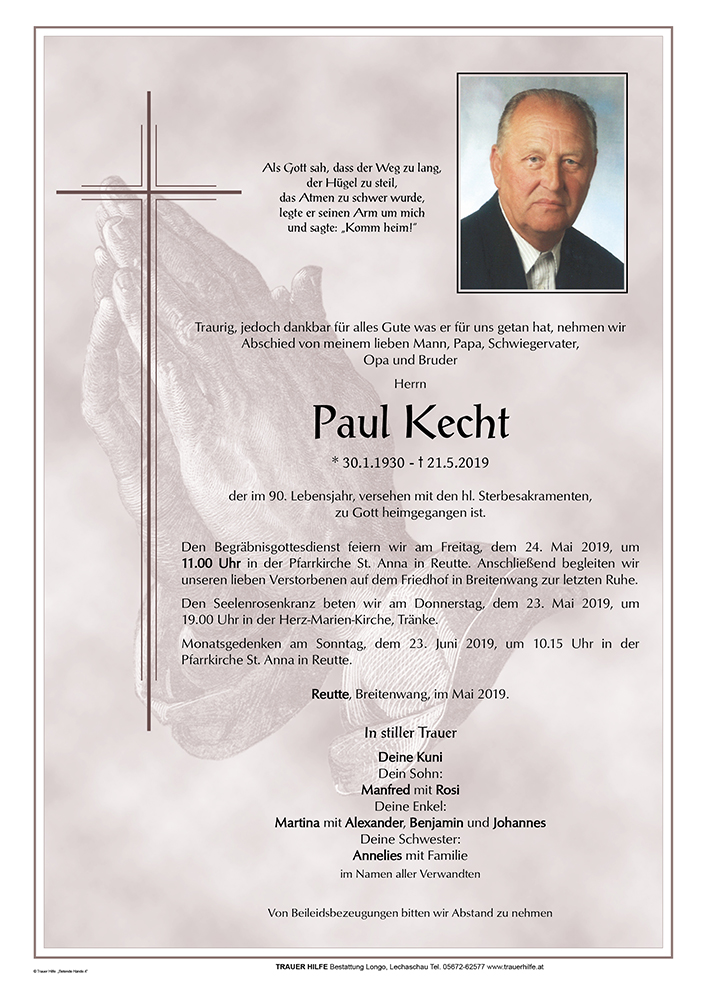 Kondolenzbuch für Paul Kecht