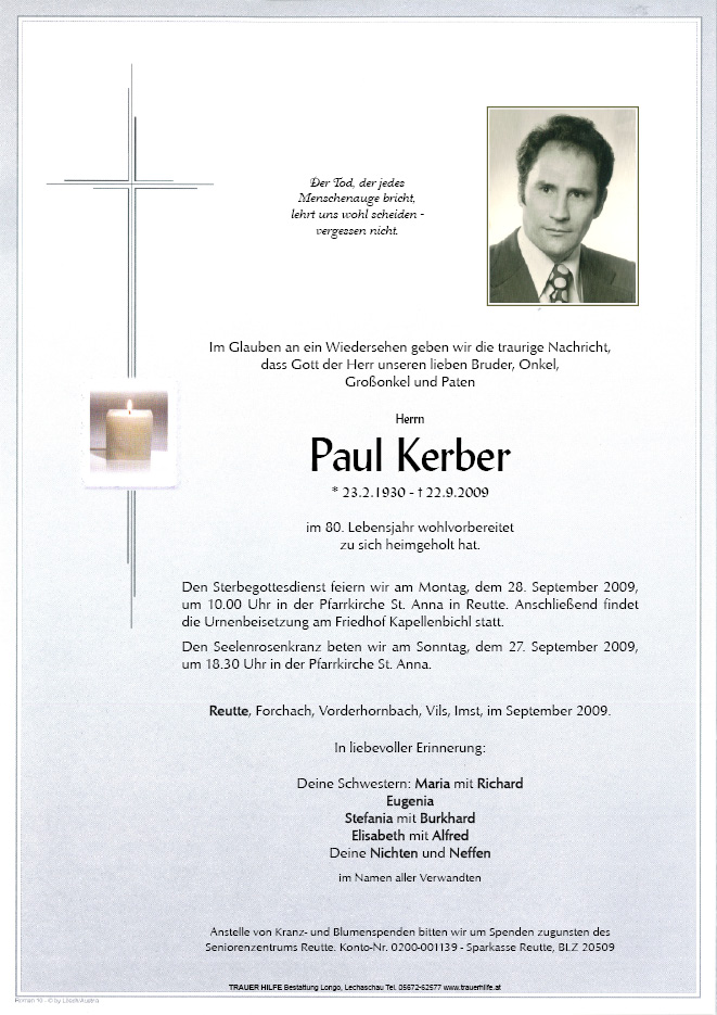 13.12.1901 22.09.2009 Reutte Paul Kerber Action Parte Gedenkkerzen Kondolenzen Parte Gedenkkerzen Kondolenzen Parte herunterladen Gedenkkerzen für Paul Kerber 10 Einträge Kerze anzünden Sabine Ruhe in Frieden Sabine denke gerade an dich in Liebe Sabine Sabine sabine Sabine Sabine Ihre Gedenkkerze fürPaul Kerber Ihr Name* Farbe auswählen Ihre Nachricht oder Name* E-Mail-Adresse* Mit dem Klicken auf "Kerze anzünden" erklären Sie sich mit unseren Datenschutzbestimmungen einverstanden. Kondolenzbuch für Paul Kerber 0 Einträge Kondolenz verfassen Ihr Abschiedsgruß an Paul Kerber Ihr Name* E-Mail-Adresse* Ihre Nachricht* Mit dem Klicken auf "Gruß absenden" erklären Sie sich mit unseren Datenschutzbestimmungen einverstanden.