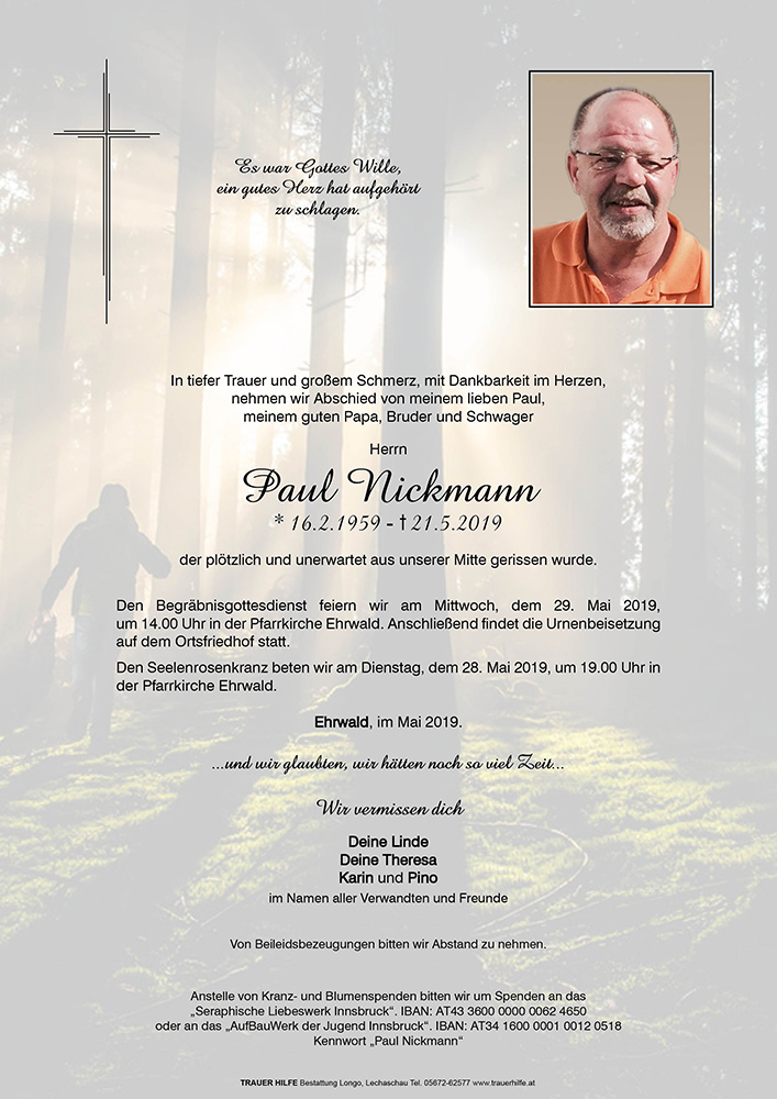 Der Tod von Paul hat auch uns sehr getroffen, Viel Kraft in dieser schweren Zeit!