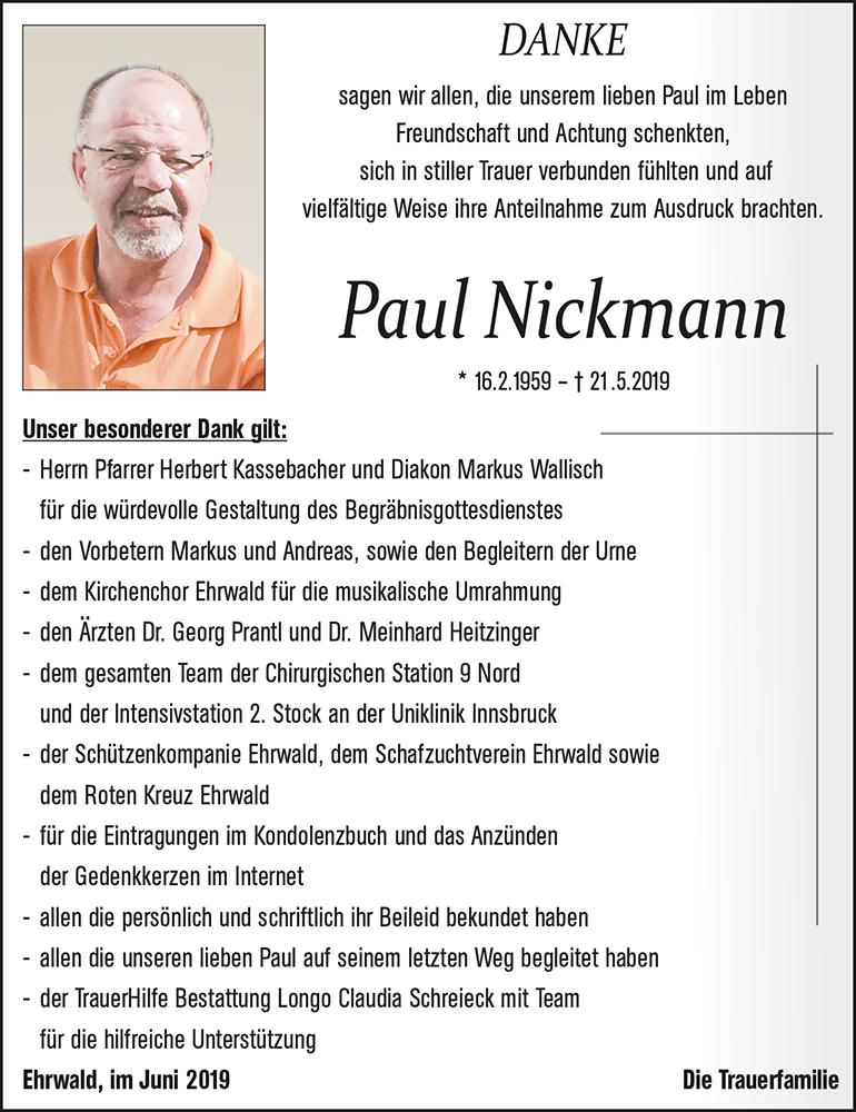 Aufrichtige Anteilnahme an eurer Trauer um Paul entbietet