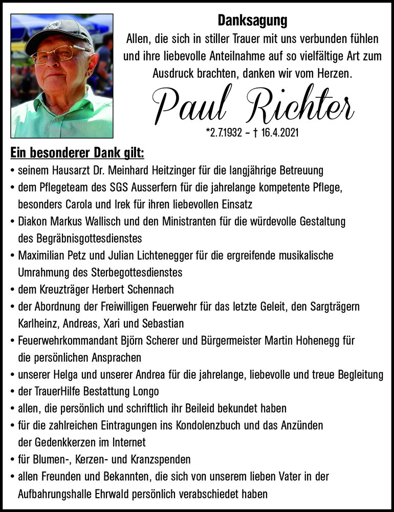 Kondolenzbuch für Paul Richter