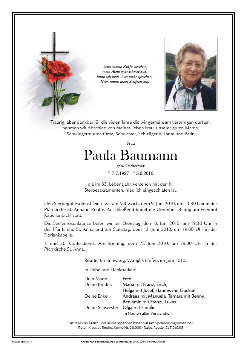 Ruhe in Frieden Paula