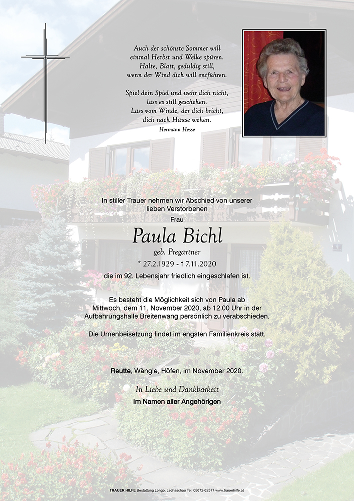 Kondolenzbuch für Paula Bichl