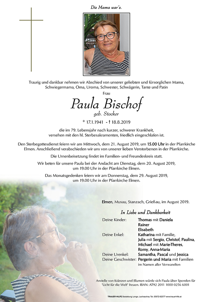 Kondolenzbuch für Paula Bischof