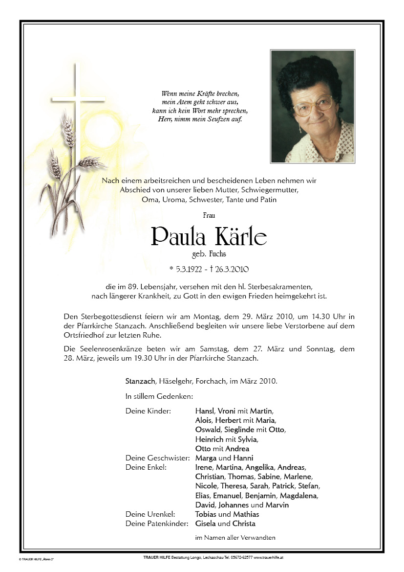 13.12.1901 26.03.2010 Stanzach Paula Kärle Action Parte Sterbebild Gedenkkerzen Kondolenzen Parte Sterbebild Gedenkkerzen Kondolenzen Parte herunterladen Sterbebild herunterladen Gedenkkerzen für Paula Kärle 7 Einträge Kerze anzünden Magdalena Nicole mit Patrick und Julia Magdalena Magdalena Magdalena Magdalena Nicole und Patrick Ihre Gedenkkerze fürPaula Kärle Ihr Name* Farbe auswählen Ihre Nachricht oder Name* E-Mail-Adresse* Mit dem Klicken auf "Kerze anzünden" erklären Sie sich mit unseren Datenschutzbestimmungen einverstanden. Kondolenzbuch für Paula Kärle 0 Einträge Kondolenz verfassen Ihr Abschiedsgruß an Paula Kärle Ihr Name* E-Mail-Adresse* Ihre Nachricht* Mit dem Klicken auf "Gruß absenden" erklären Sie sich mit unseren Datenschutzbestimmungen einverstanden.