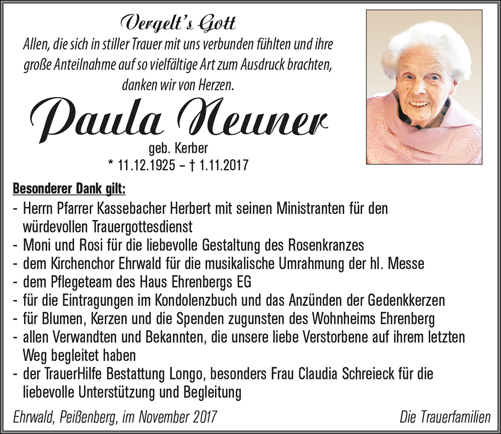 Kondolenzbuch für Paula Neuner