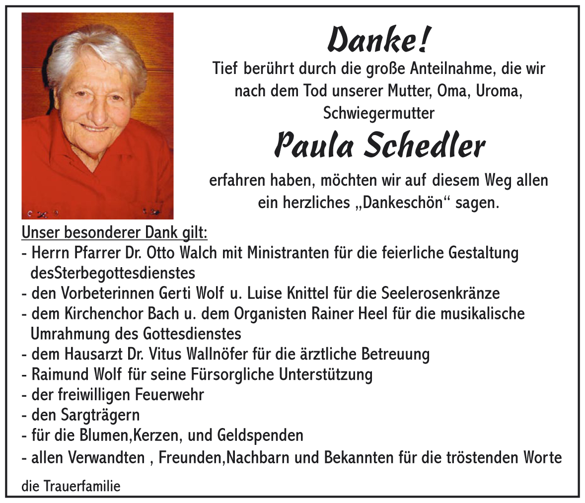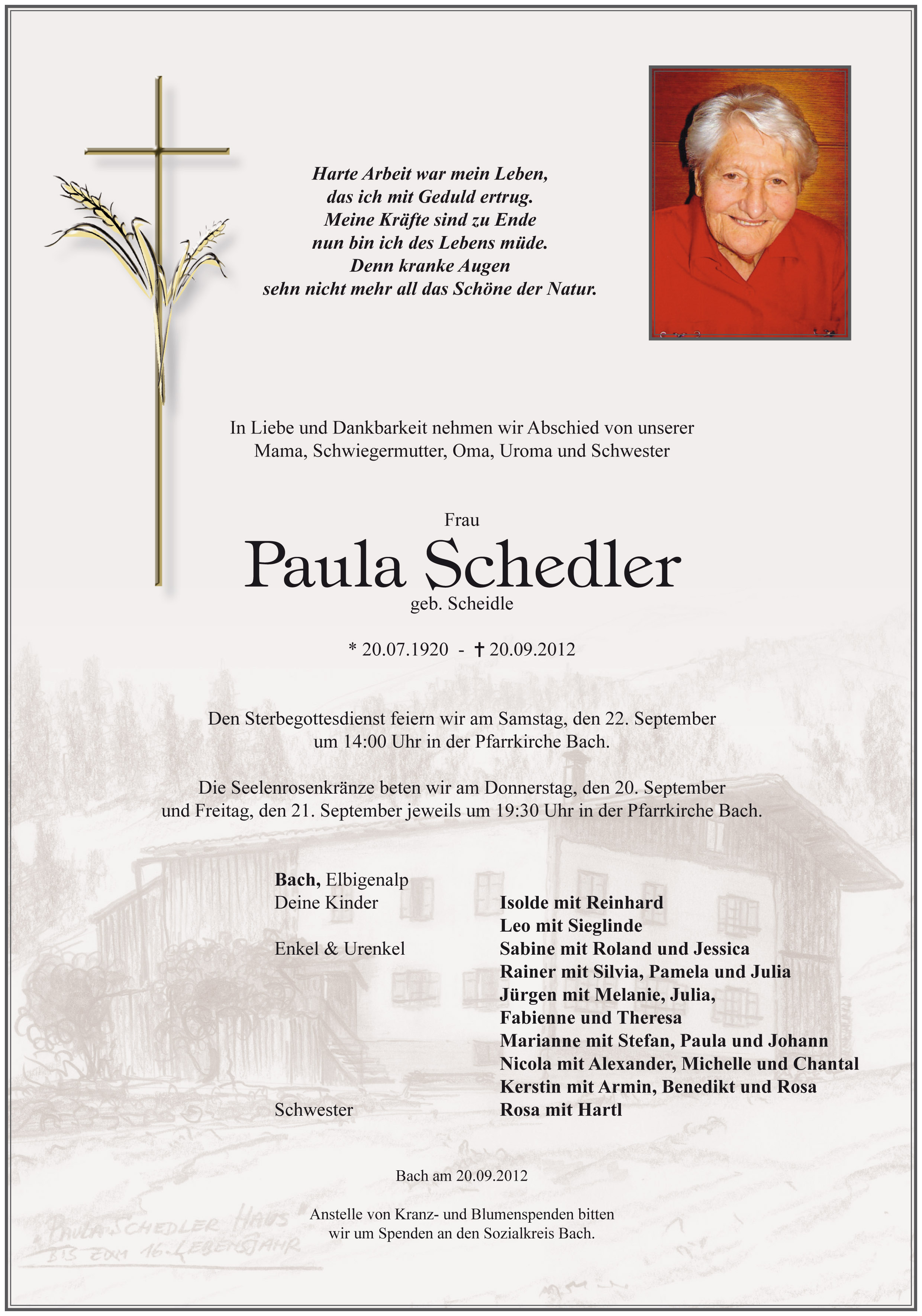 Kondolenzbuch für Paula Schedler