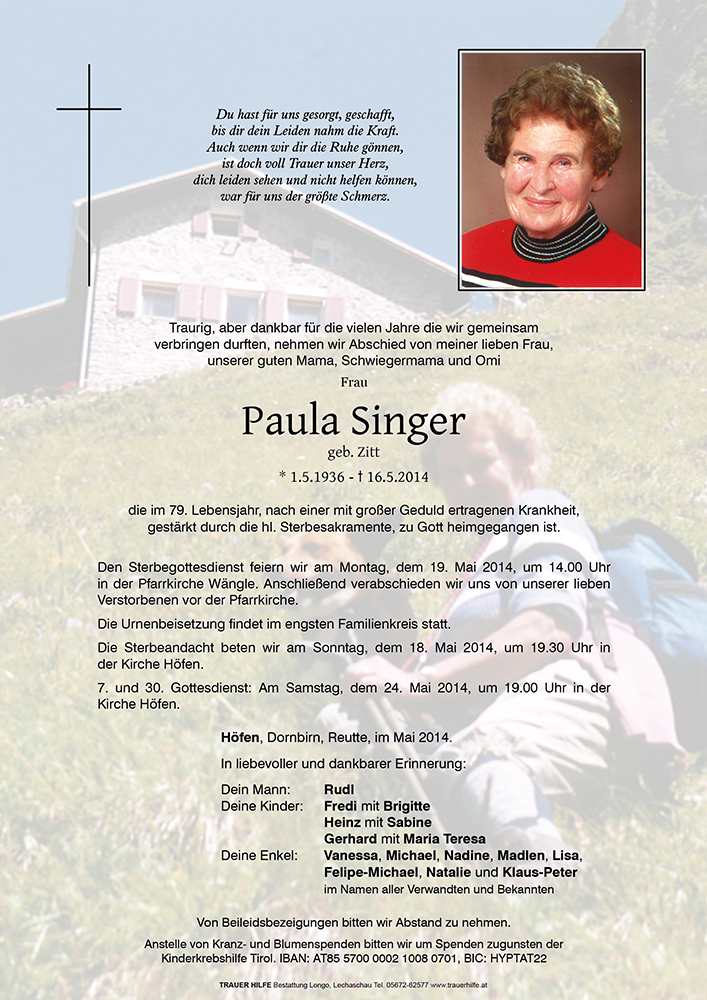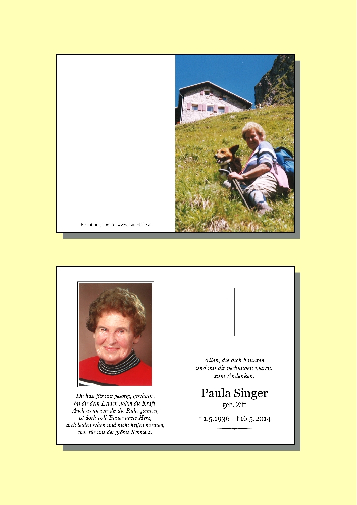 Ihr habt eure Omi die ganze lange Zeit der Krankheit, fürsorglich, aufopfernd und liebevoll begleitet. Nun wird eure Paula euch vom Himmel herab begleiten und beschützen.