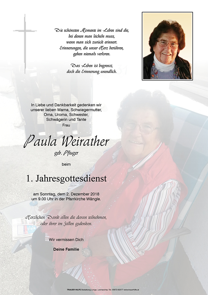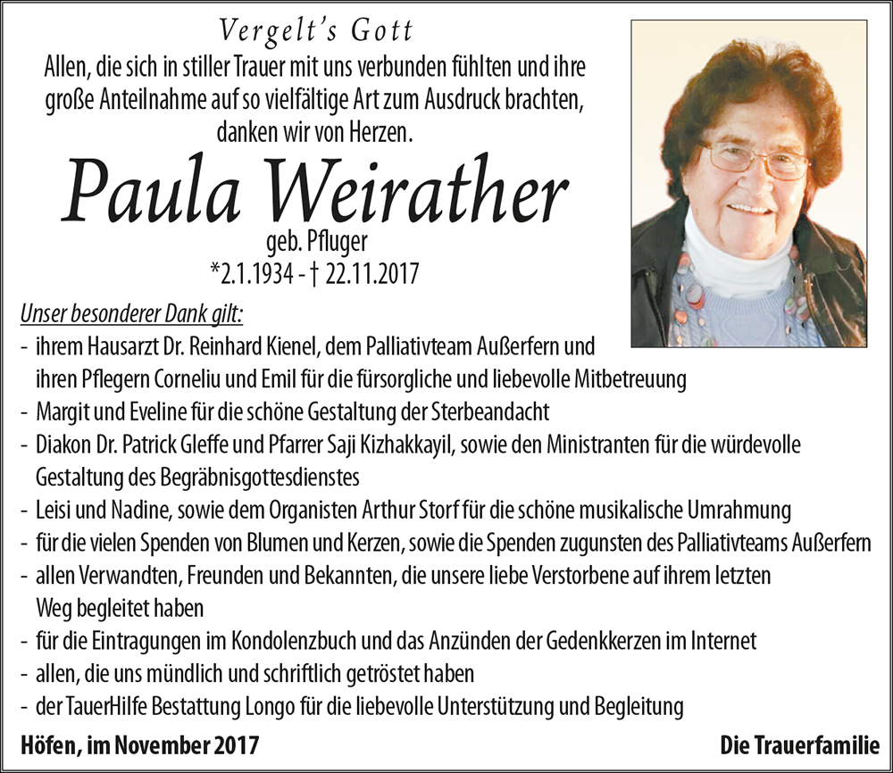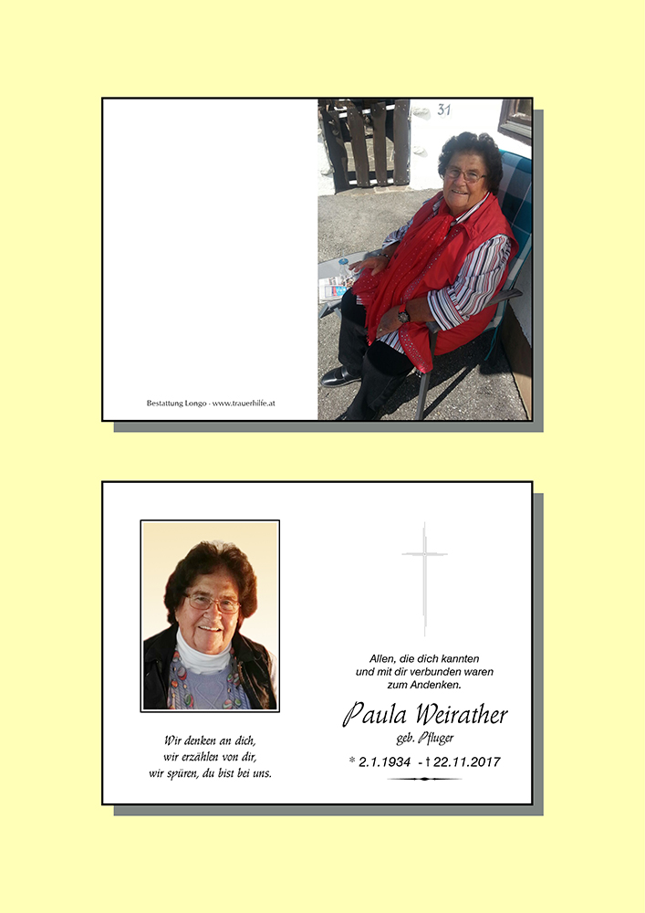 Zum Verlust von Eurer Lieben Paula möchten wir unser tiefes Mitgefühl ausdrücken. Wir wissen wie schmerzvoll es ist einen lieben Menschen zu verlieren und wünschen Euch in diesen schweren Tagen viel Kraft. Wir sind in Gedanken bei Euch!