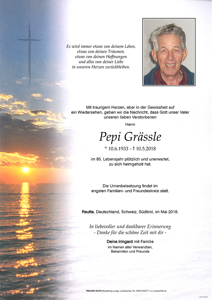 Lieber Pepi, ich durfte als Kind auf deinem Schoß sitzen, mit dir im Laster als Mohrenschimmele mitfahren, wenn du für die Mohrenwirtler fleißig warst, später dann dein Beifahrer im Fernzug sein, auf dem Weg über den Brenner nach Milano und weiter. Und als alter Mann dann warst du mein Handwerker und ein liebevoller Freund für unsere drei Kinder, die den Pepi so gerne mochten.