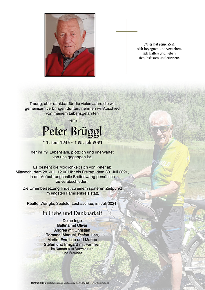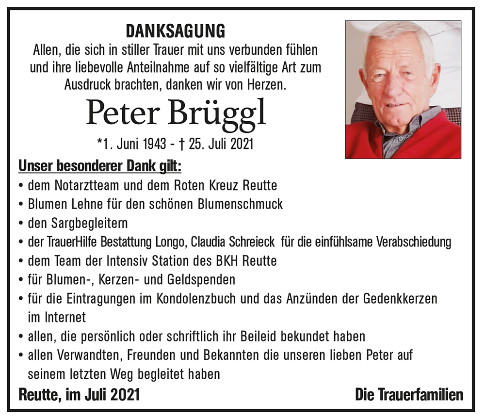 Kondolenzbuch für Peter Brüggl