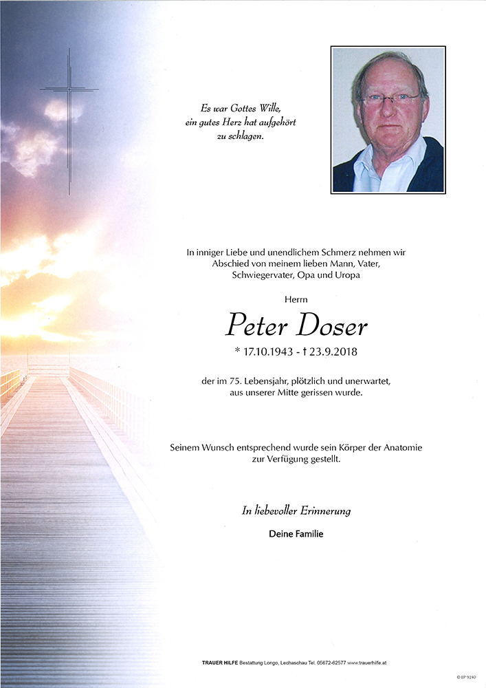 Kondolenzbuch für Peter Doser