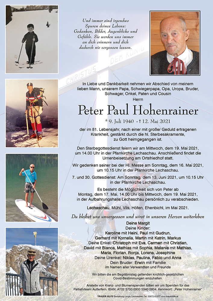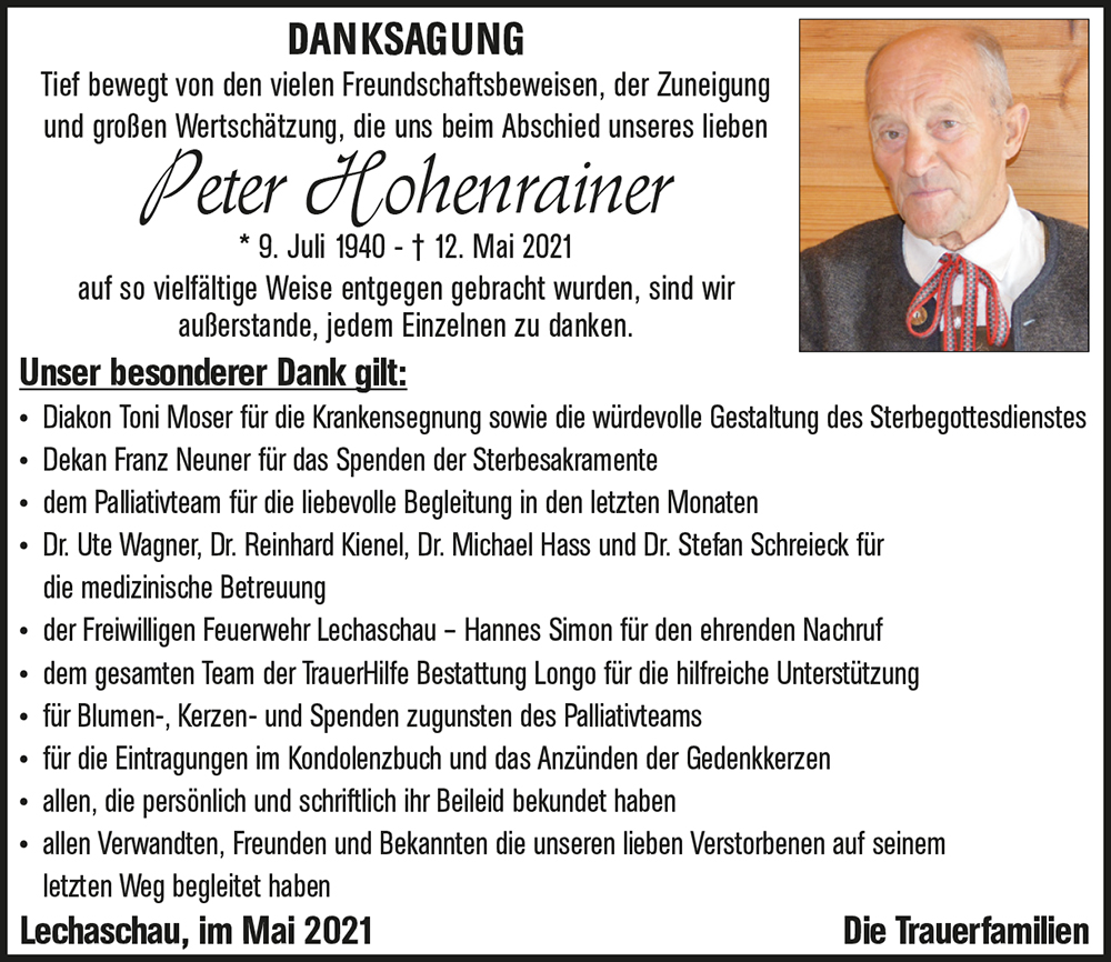 Wir möchten Euch unsere aufrichtige Anteilnahme zum Tode von Peter aussprechen. Viel Kraft in dieser schweren Zeit.