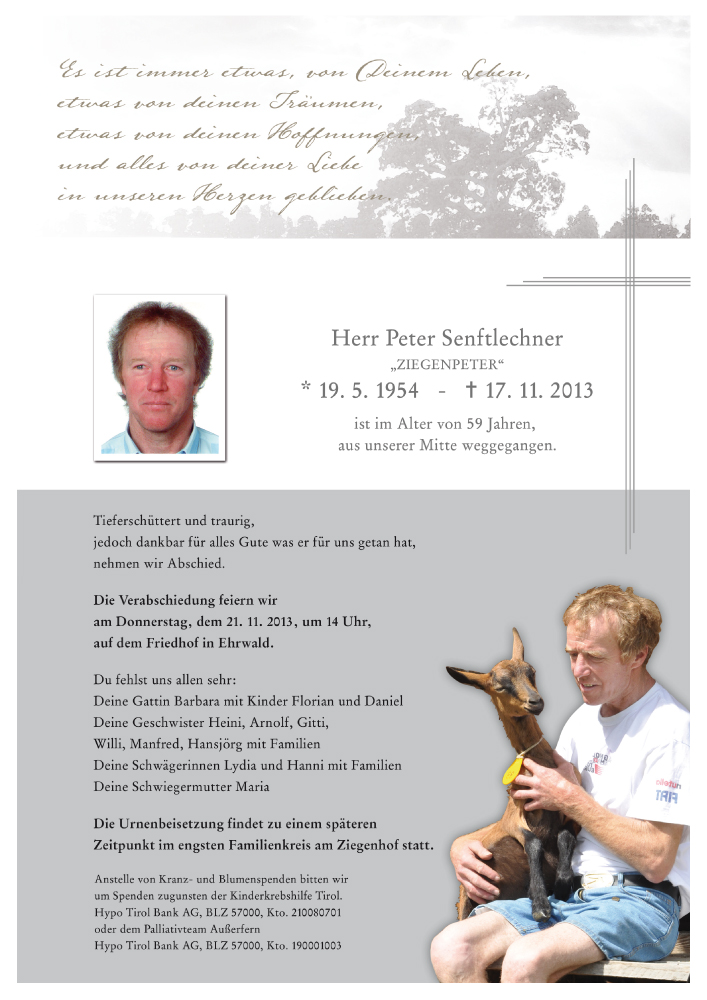Im Namen der Fa. Stolz / Reutte versichere ich euch unsere aufrichtige Anteilnahme