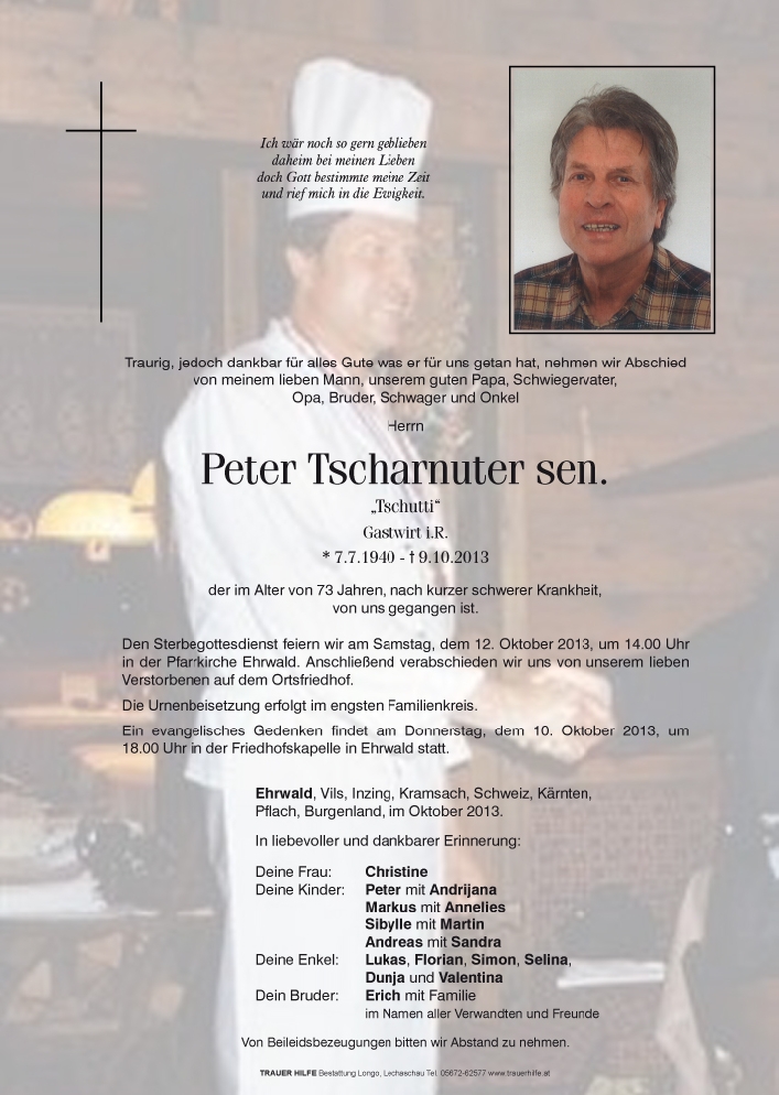 Kondolenzbuch für Peter Tscharnuter