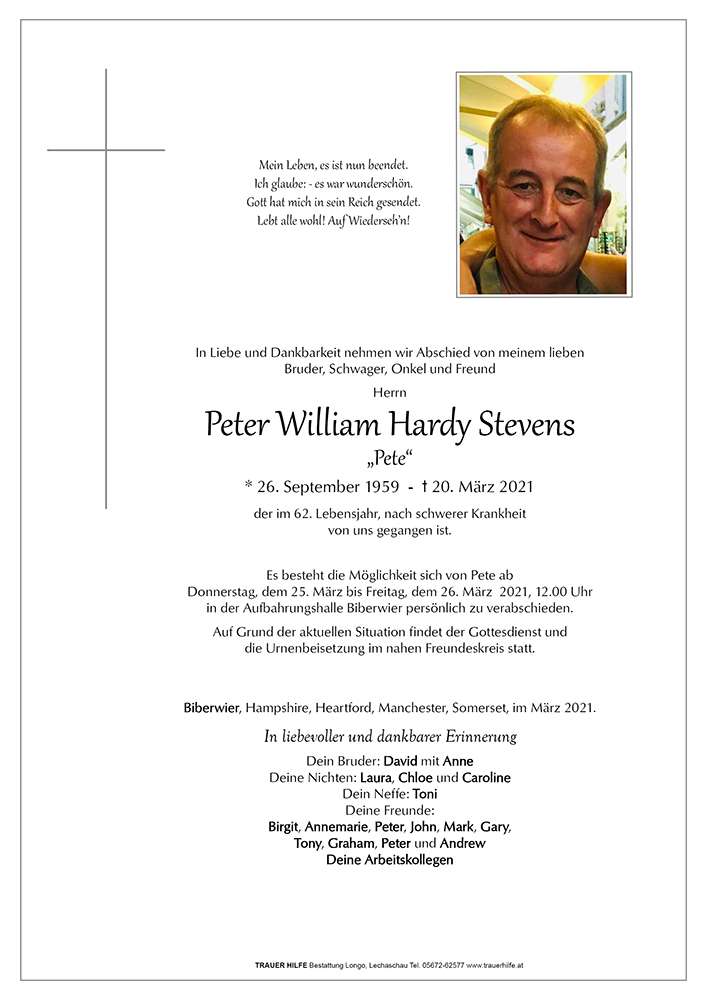 Kondolenzbuch fĂŒr Peter William Hardy Stevens