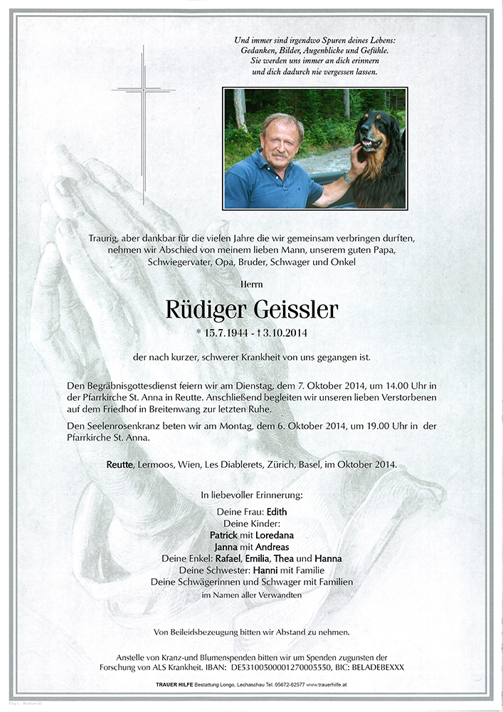 Liebe Edith, liebe Ursula, liebe Janna, lieber Patrick, liebe Familie