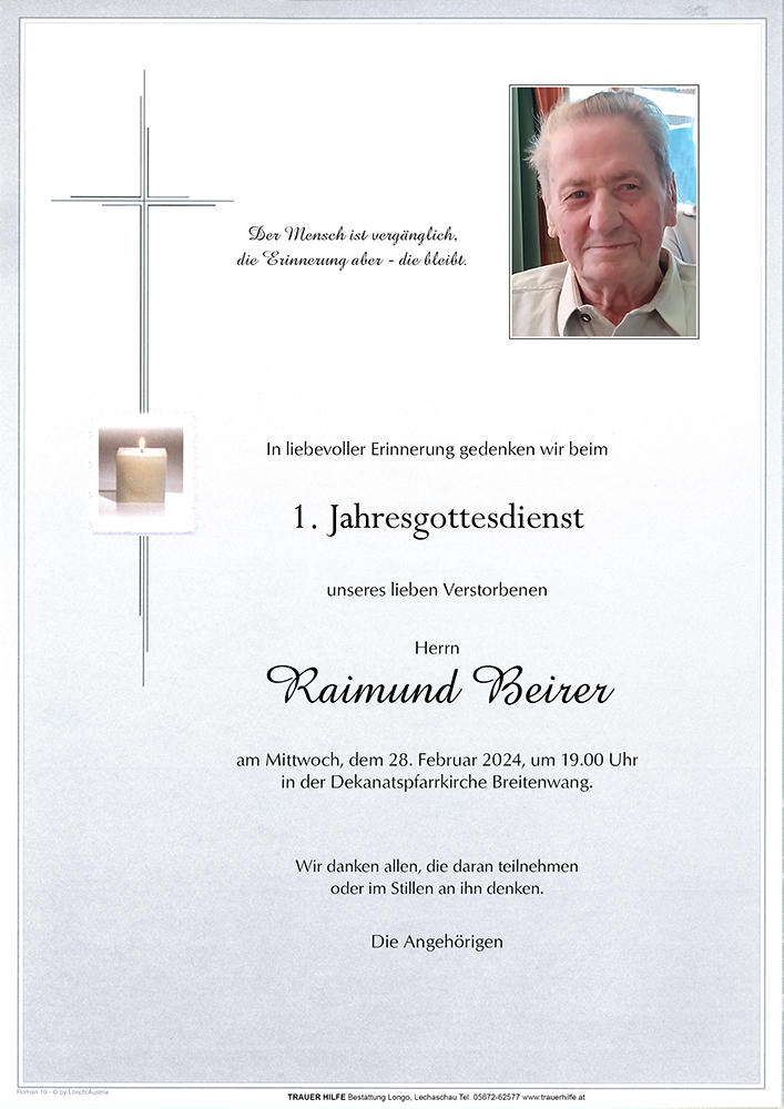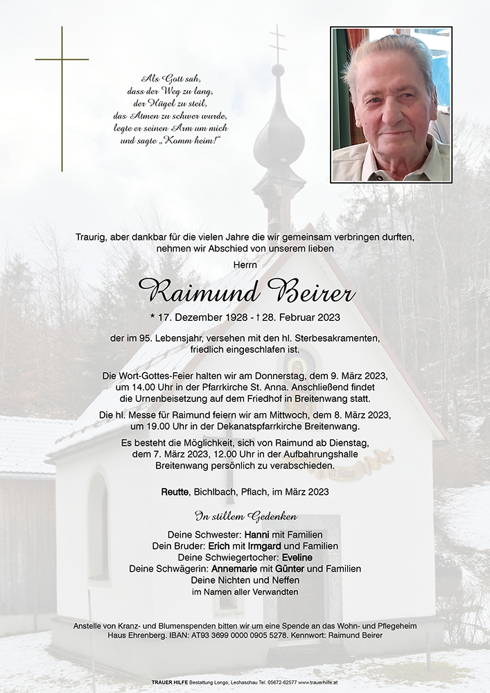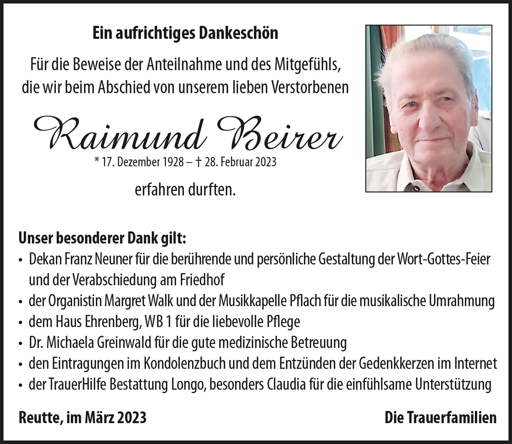 17.12.1928 28.02.2023 Reutte Raimund Beirer Action Parte Sterbebild Gedenkkerzen Kondolenzen Danksagung Jahrestag Parte Sterbebild Gedenkkerzen Kondolenzen Danksagung Jahrestag Parte herunterladen Sterbebild herunterladen Gedenkkerzen für Raimund Beirer 201 Einträge Kerze anzünden Zum Jahresgedenken Anna-Maria Tschiderer Ein LICHT für die EWIGKEIT!✨️ Zum Jahrtag Raimund.....Markus H. A Kerzal zum 1. Jahrtag ??? Ein LICHT zum JAHRESTAGS-GEDENKEN? RIP.Werner und Karin Kößler ?? Ruhe in Frieden!✨️ Ruhe in Frieden Raimund Markus H. Ruhe in Frieden Raimund Markus H. Ruhe in Frieden Raimund Markus H. Ruhe in Frieden Raimund Markus H. Ruhe in Frieden Raimund Markus H. Wörz Reini und Ingrid Ruhe in Frieden Raimund Markus H. Ruhe in Frieden Raimund Markus H. Sonja Winkler Ruhe in Frieden Raimund Markus H. Hubert Wendlinger Sonja Winkler Haus Ehrenberg WB1✨️?✨️ Barbara Schweißgut ✨️ Hubert Wendlinger Benno Wiesinger Wolfgang Huter Michael Mutschlechner Sonja mit Familie Familie Werner Rauth R.I.P. Johanna Woerle Johannes Storf Sonja Winkler Martin Suitner Ruhe in Frieden Reinhold & Regina Feistenauer Christine Grasl, Erich Printschler Irmgard und Guntram Eiter Hans und Margit Maier Hubert Wendlinger Elmar Vorhauer Werner Fam. Martin u Raphaela Schweißgut Fam. Christian Tiefenbrunn Peter und Elsbeth Zobl Alexander Ammann Schweißgut Angela Benno Wiesinger Walburga & Josef Dürrhammer Guggenberger Doris mit Familie Alfred Sonnweber Lutz Maria Wolfgang Huter Roland &SusanneSchaich Ernst J. Messmer & Kirsten (Kufstein) Fam. Reinhard Hornstein Eugen Winkler sen. Fam. Gertraud und Robert Kaiser Doris Wex Gruber Gisela und Hubert Fam. Mantl Bernhard & Gabi mit Fredl Annelore Roswitha Feistenauer In lieber Erinnerung Waltraud in stillem gedenken KLUCKNER Bernhard Erika Kluckner Beirer Roland und Gabi Martin & Yvonne Barbist Fam. A. KAMPER Herbert und Andrea Frischmann In lieber Erinnerung Fam. Marlies Breithuber Maximilian Beirer Kurt und Maria Bader Anni und Gerhard Hess Fam. Erich u.Lydia Mendl Marga Hackl Sieglinde und Gerfried Breuss Claudia und Walter Kuntara Wastl und Agnes Mühlburger Fam.Elke und Fredy Hammer 24h-Dahoam Wolfgang und Eugenie Puntigam Familie Helene Posch Werner u. Helga Angerlechner Annemarie und Kaspar Kohler Irene Weirather mit Familie Familie Anton Specht Gerlinde Haunsberger Brandner Anton Inge und Reinhard Strigl Fam.Mia Male Christine Strauß mit Familie Fam. Glätzle Markus & Christiane Fam. Heinz u. Daniela Brutscher REINHARD BERTLMANN Fam. Marianne u. Markus Rudigier Elsbeth u. Rudolf Strigl Marianne Horndacher Claudia Wellenzohn R.I.P. - Anita Walch-Lang Gerlinde Michaela & Herbert Suitner Fam.Hilde u.Roland Hechenblaikner Verena und Roland Scheucher Fam Schneider Elli, Hermann und Nadine Margit Weirather Jo und Gerti Kröner Fam.Stefan Beirer Fam. Johannes und Gudrun Baumann Sonja mit Familie Fam.Keilhofer Fritz Wendlinger Edeltraud Tiefenbrunn Ruhe in Frieden Eberharter Peter und Anita Fam.Hilde u.Otmar Gruber Reinhold und Roswitha Rief Uhrmacher´s Erich Werner Böhm & Heide Thiele Karner Ingrid Fam. Bernhard & Beate Sax Andi u. Sabine Hosp m. Daniel Jana und Elisa Bernhard und Christine Helfer Fick Renate Fam. Josef u. Elisabeth Jochum Toni und Sigrid Eisele Martin Schweigl Mario u. Barbara Rief Fam . Günther Haberl Gustl und Monika Ihrenberger Schmid Hubert Lechaschau Lucas Gezzele Gerda Berger Georg u. Hermi Strele Eugen & Petra Barbist Petra Hoheneder Monika Simader Gerda u. Fritz Bubendorfer Fam. Harald Schmid R.I.P.Werner und Karin Kößler ?? Julia Gruber Erika Heiß (Ernst) Fam. Klaus und Petra Eberle Lisa Mair⭐️ Olivia Sigi Abraham Ruhe in Frieden! Fam. Dirrhammer Fam. Hedi Zimmer monika-norbert philipp Christian & Daria Larcher Manfred & Trixi Kerber Posch Angelika Brigitte und Albin Drexl Bernhard Zaggl Familie MEẞMER Gerhard & Ingrid Christina und Emil Sarapatka Norbert und Silvia Beirer Michael Mutschlechner Fam. Heribert & Anni Bailom Georg und Anni Brunner, Heiterwang Haus Ehrenberg WB1✨️?✨️ Regensberger Conny und Wolfgang Elke Greinwald Fam.Schütz Maria Petrini Thomas Beirer mit Familie Robert u. Monika Hammerle Lisi Matreux Anna-Maria Tschiderer R.I.P. Barbara Schweißgut ✨️ Michael & Verena Schweißgut Ruhe in Frieden Onkl Waltraud mit Fam Corinna & Clemens Falger Erich und Rosina Köck Peter und Christine Müller Marlene, Andreas u. Christoph Hazy Wolfgang Hosp Lechaschau/Pfronten Familie Leitner Pflach oberletzen Fam. Martin und Elisabeth Weirather Walter & Margret Burkert,Ruhe in Frieden Walter & Margret Burkert,Ruhe in Frieden Walter & Margret Burkert,Ruhe in Frieden Fam.Kecht Manfred Margarete u.Emmerich Lutz Fam. Paul Kaiser Angelika u. Uli Schädler Familie Werner Rauth Paul Seitz mit Familie Huter Klaudia Fam. Edi Ammann Fam. Sonja Winkler Nicole Strobl Helga Rachbauer Heinz & Gerda Fröhlich Gerti Sax Wolfram und Renate Vindl Monika u. Herbert Schweißgut Mair Erika Ruhe in Frieden Beirer Annemarie Walter und hertha friedle Elmen Claudia Schreieck TrauerHilfe Bestattung Longo Ihre Gedenkkerze fürRaimund Beirer Ihr Name* Farbe auswählen Ihre Nachricht oder Name* E-Mail-Adresse* Mit dem Klicken auf "Kerze anzünden" erklären Sie sich mit unseren Datenschutzbestimmungen einverstanden. Kondolenzbuch für Raimund Beirer 1 Eintrag Kondolenz verfassen In stillem Gedenken Entbieten Roland und Susanne Schaich Susanne Schaich 05.03.2023 um 07:47 Uhr Ihr Abschiedsgruß an Raimund Beirer Ihr Name* E-Mail-Adresse* Ihre Nachricht* Mit dem Klicken auf "Gruß absenden" erklären Sie sich mit unseren Datenschutzbestimmungen einverstanden. Danksagung herunterladen Jahrestag herunterladen