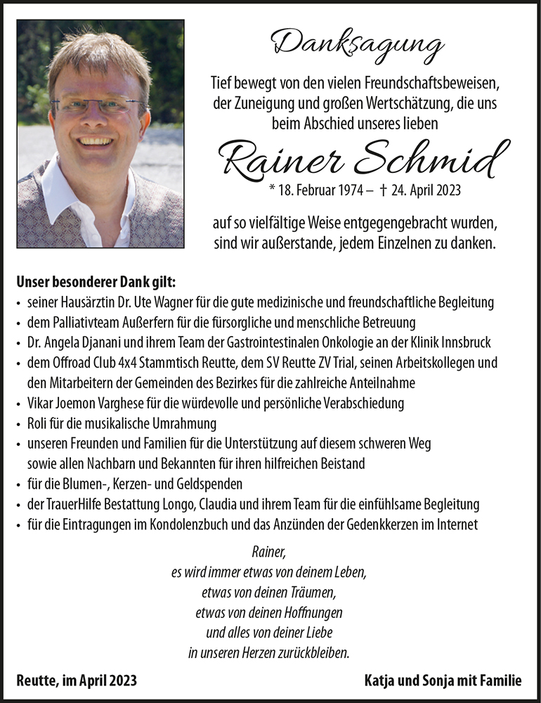 Kondolenzbuch für Rainer Schmid