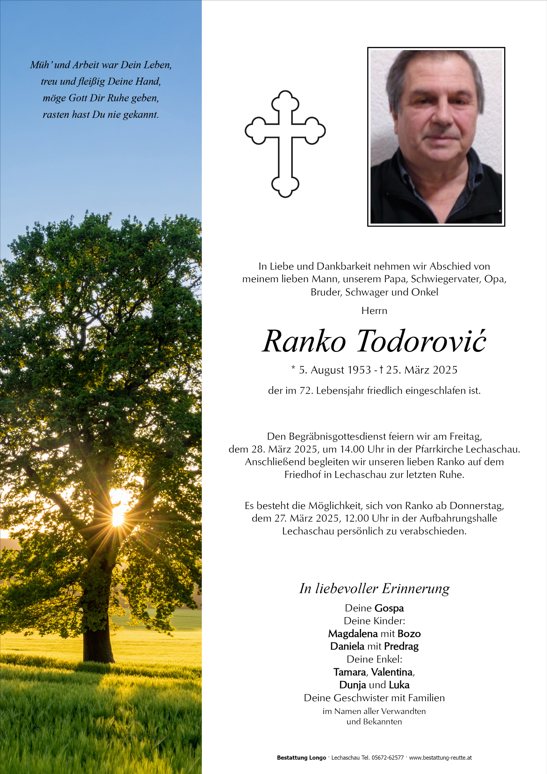 Kondolenzbuch für Ranko Todorovic