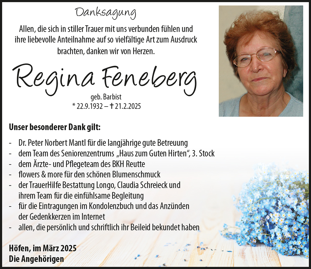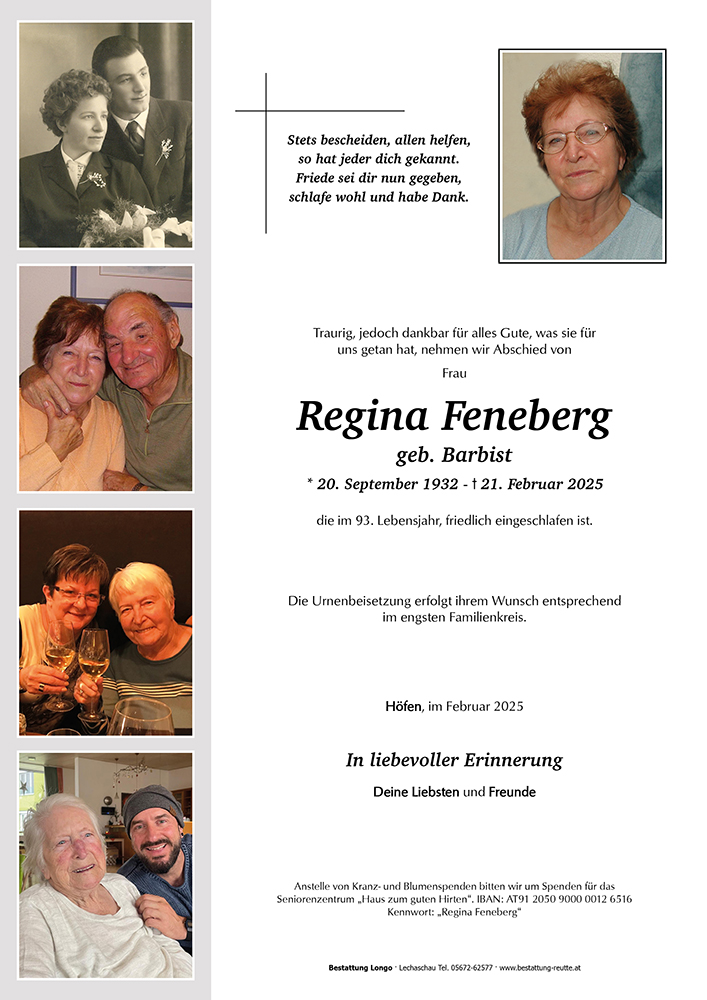 Liebe Angelika! Lieber Stefan! Mein aufrichtiges Beileid zum Verlust deiner Mama deiner Oma. Liebe Regina schlaf wohl ♥️ LISI
