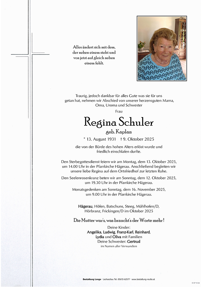 Kondolenzbuch fĂŒr Regina Schuler