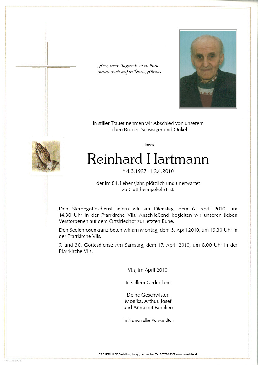 13.12.1901 02.04.2010 Vils Reinhard Hartmann Action Parte Sterbebild Gedenkkerzen Kondolenzen Parte Sterbebild Gedenkkerzen Kondolenzen Parte herunterladen Sterbebild herunterladen Gedenkkerzen für Reinhard Hartmann 0 Einträge Kerze anzünden Ihre Gedenkkerze fürReinhard Hartmann Ihr Name* Farbe auswählen Ihre Nachricht oder Name* E-Mail-Adresse* Mit dem Klicken auf "Kerze anzünden" erklären Sie sich mit unseren Datenschutzbestimmungen einverstanden. Kondolenzbuch für Reinhard Hartmann 0 Einträge Kondolenz verfassen Ihr Abschiedsgruß an Reinhard Hartmann Ihr Name* E-Mail-Adresse* Ihre Nachricht* Mit dem Klicken auf "Gruß absenden" erklären Sie sich mit unseren Datenschutzbestimmungen einverstanden.