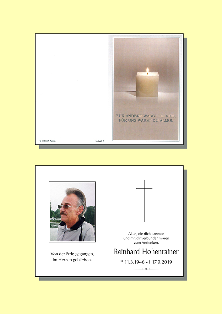 11.03.1946 17.09.2019 Reutte Reinhard Hohenrainer Action Parte Sterbebild Gedenkkerzen Kondolenzen Parte Sterbebild Gedenkkerzen Kondolenzen Parte herunterladen Sterbebild herunterladen Gedenkkerzen für Reinhard Hohenrainer 140 Einträge Kerze anzünden Ruhe in Frieden Werner und Karin Kößler Gedenkkerze Ruhe in Frieden Ruhe in Frieden Lisi Matreux Marion Singer Brigitte Biechl Aufrichtige Anteilnahme Michaela und Willi Christian Strauß Peter Longo und Söhne In stillem Gedenken Monika Zingerle Fam. Christoph Salvenmose Peter Wartusch Fam. Regauer Michael Steiner Markus Huter mit Familie Fam . Günther Haberl Wolfgang Eberle In stillem Gedenken Richard Wasle Doris u. Danijel Lokin Lutz Maria Ch. und Th. Reinstadler Isolde und Klaus Götzhaber Doris Lewisch mit Familie Margit & Peter Hohenrainer Elfie Schlux dein Mitschüler Franz Angerer Sandra Koch ( Strauß) Fam. Bruno Reinstadler Hubert Mair Familie Fritzi und Helmut Gassler Fam. Oskar u. Marlies Ginther Wolfgang u. Rosalinde Schottenhamm Andrea und Reinhard Lechaschau Sonja Umlauft mit Familie Herbert Frischmann mit Familie Fam. Marco und Kathrin Tomes norbert &monika philipp Dietmar Sprenger Werner und Karin Kößler Martina und Markus Wolf Scherer Sabine u. Fritz Familie Anton Specht Anita Schedle Andrea Wachter In stillem Gedenken Albert Kerber Säulinghaus Gerhard Eisele Walburga und Josef Dürrhammer Christine Plosinjak m. Fam Erika Heiss (Ernst) Bauer Brigitte Ginther Franz Fam. Paul u. Veronika Kerber Bader Erich Netti und Thomas Brandner Toni Koch Andreas Michael Mutschlechner Herbert & Michaela Suitner Reinhard Bertlmann Fam. Thomas&Nicole Hofherr Katrin Santer-Astl Michi Sprenger mit Martin Christine Weilharter Fam. Schlag Lenger Klaudia & Klaus Sandra Klaus & Lea Fam. Leuprecht Wolfgang Fam. Paul Dietmar Barbara Wörle Daniel Pippan Anita und Gerhard Schönherr Edeltraud u. Erich Sprenger Fam. Reisigl Michael Anita und Wolfgang Tinkl Hospizteam am Haus Ehrenberg PAUZENBERGER Josef Maria u. Günther Beyrer Fam. Meßmer Gerhard + Ingrid Siegi und Eva mit Marie Gustl Ihrenberger Martina & Bernhard mit Lisa Fam. Schwarz Leo und Angelika Sabine u. Jürgen mit Fam. Fam. Reinhold Sprenger Gerhard und Roswitha Keller Christian Keller ELMAR ISENBURG Ruth Isenburg Roswitha Feistenauer Barbara u. Mario Rief Fam. Martina & Dietmar Storf Lisi Matreux Silvia und Elmar Beirer Paul&Adele Strolz Fam. Johann Fasser Fam. Stefan Beirer Manfred Gutmann, Reutte Manuela Baldauf Angelika Fam. Berwanger Walter Norbert u. Silfia Beirer Das Palliativ Team Außerfern Verena u. Helmut Gasser Fam. Herbert u. Karin Kastner Roland Beirer BRV BKH-Reutte JET Team Reutte Herbert & Ingrid Wachter Regensberger Wolfgang Fam. Sabine Hosp-Althaller Klaus & Bianca Kleiner Fam. Paul und Annemarie Kaiser Ernst J. Messmer & Kirsten Claudia&Christian Hohenrainer Elisabeth schlaffer Helga u. Dr. Ludwig Prokop In stillem Gedenken - Dieter Zingerle Ruhe in Frieden Markus Sax Gerti Sax Marion Singer Edi Ammann Andrea u. Andi Klaudia Schmid Fam. Herbert Kuisle Fam. Bubendorfer Sonja Dreer m. Fam. Beate u. Franz Duschl Annemarie & Bruno HAUG Enkelin maria mit markus und alicia Bettina Schlichtherle Ruhe in Frieden Team des SGS-Ausserfern Thomas Frick Sabine Ennemoser Günther Longo Claudia Schreieck TrauerHilfe Bestattung Longo Ihre Gedenkkerze fürReinhard Hohenrainer Ihr Name* Farbe auswählen Ihre Nachricht oder Name* E-Mail-Adresse* Mit dem Klicken auf "Kerze anzünden" erklären Sie sich mit unseren Datenschutzbestimmungen einverstanden. Kondolenzbuch für Reinhard Hohenrainer 1 Eintrag Kondolenz verfassen Liebe Mary, ich möchte dir mein herzliches Beileid aussprechen und wünsche dir viel Kraft! Sei umarmt deine ehemalige Schulfreundin Erika Erika Heiß (Ernst) 19.09.2019 um 10:50 Uhr Ihr Abschiedsgruß an Reinhard Hohenrainer Ihr Name* E-Mail-Adresse* Ihre Nachricht* Mit dem Klicken auf "Gruß absenden" erklären Sie sich mit unseren Datenschutzbestimmungen einverstanden.