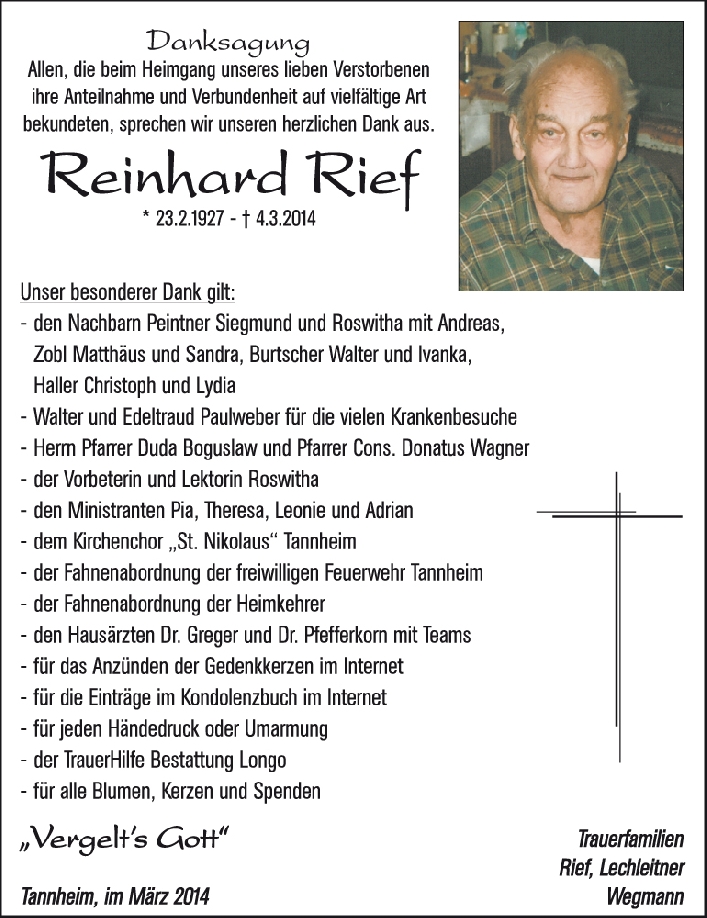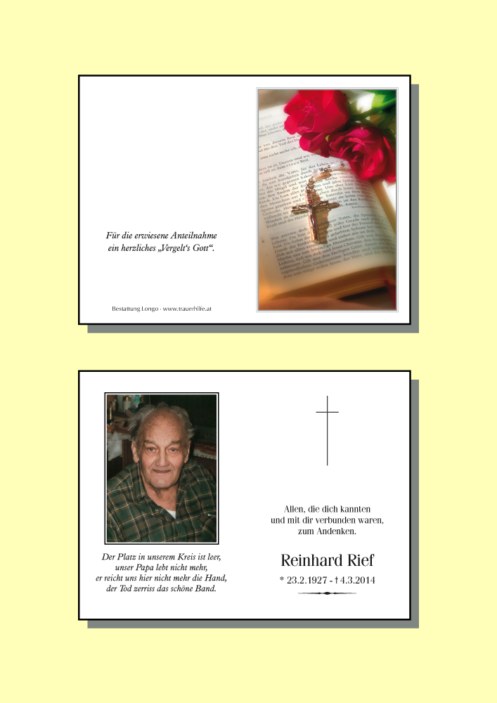 Kondolenzbuch für Reinhard Rief