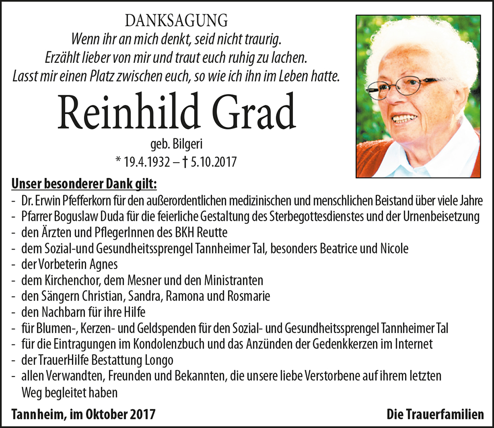 Was uns bleibt, sind Liebe, Dank und Erinnerung.