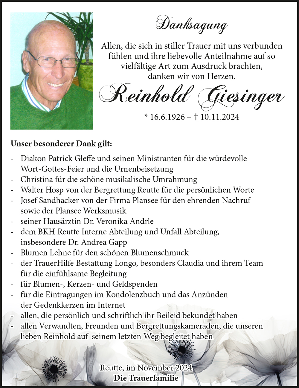 Herzliches Beileid, Ernst und Sibylle Geiger