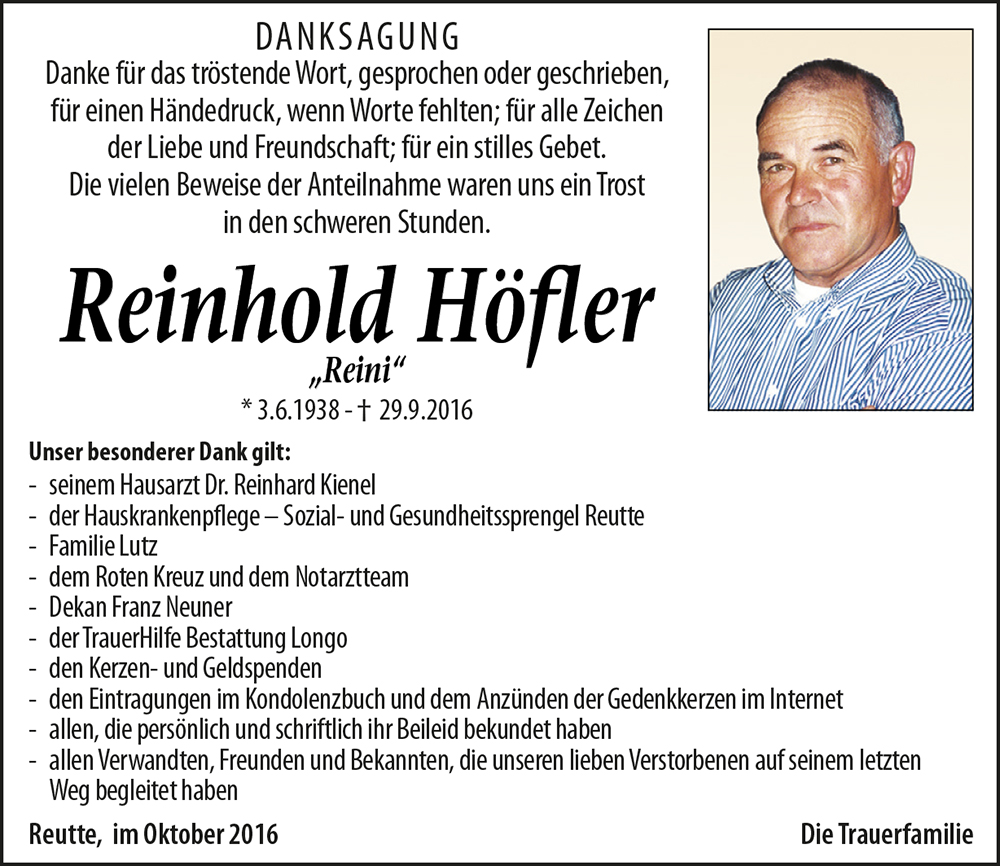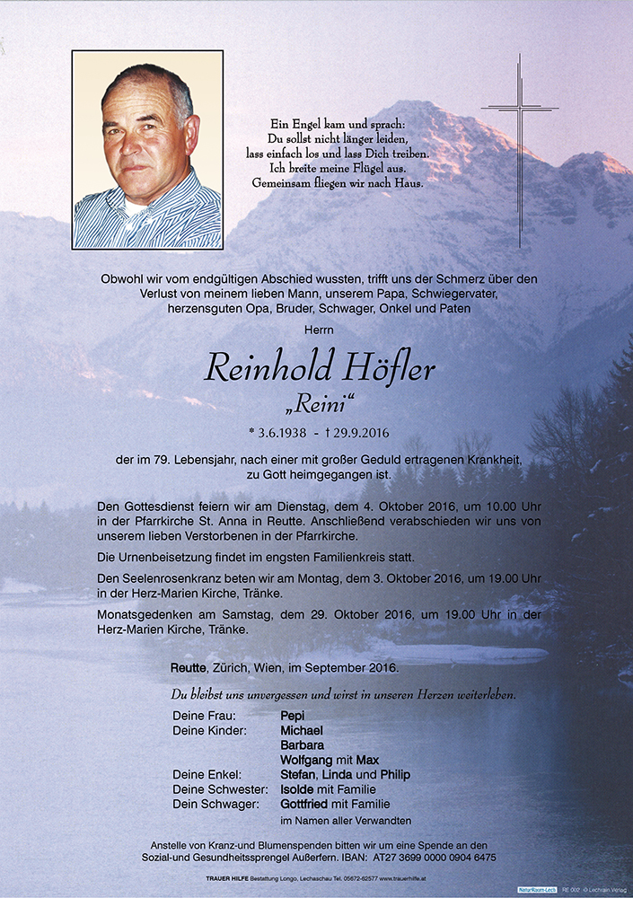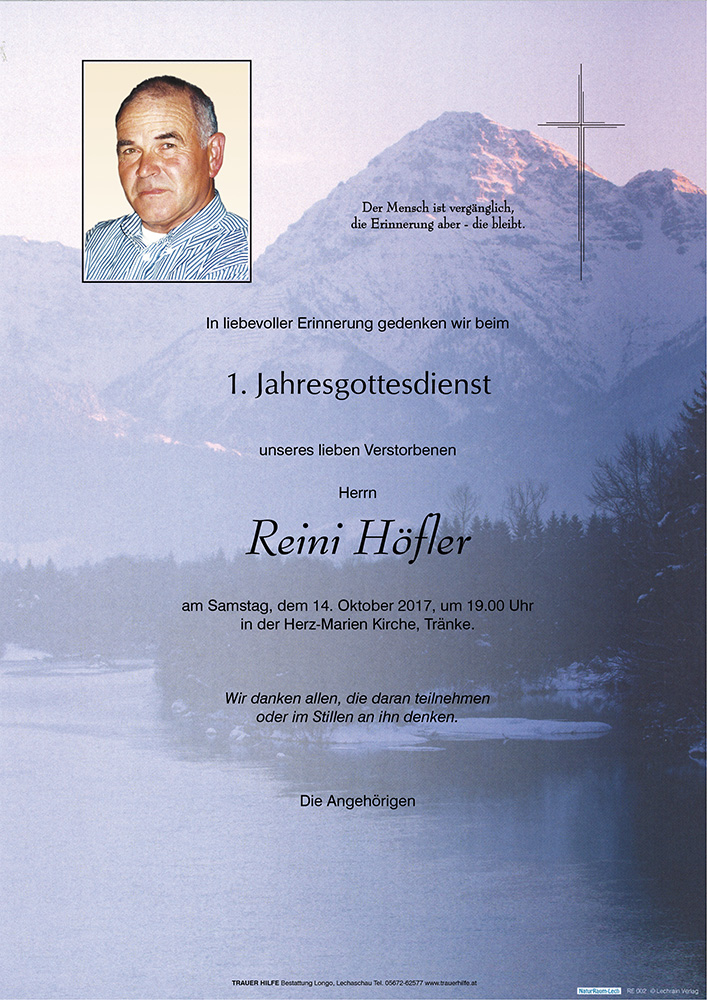 Kondolenzbuch für Reinhold Höfler