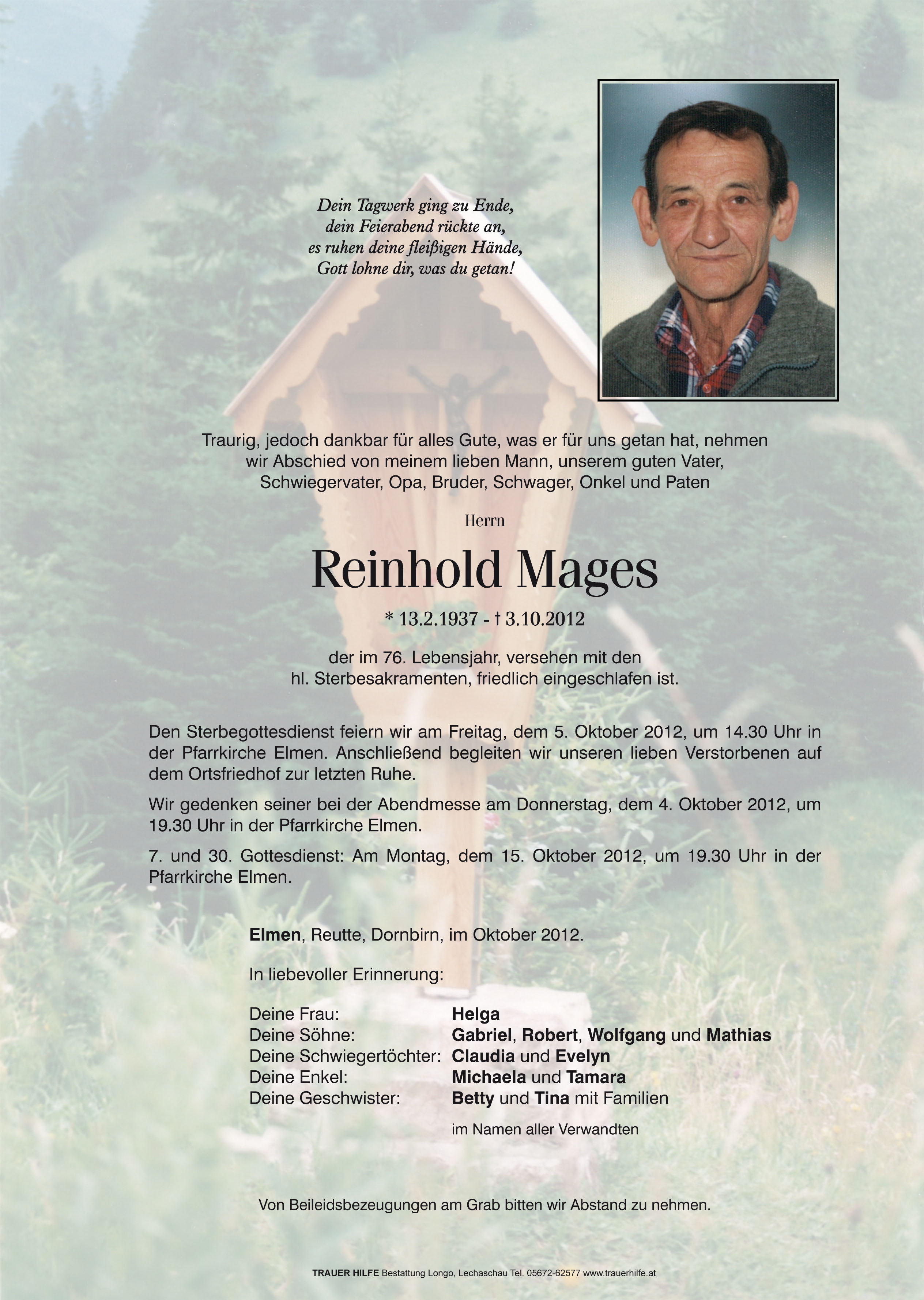 Kondolenzbuch für Reinhold Mages