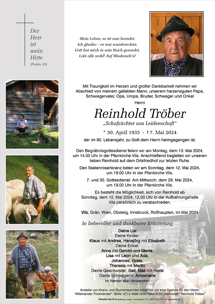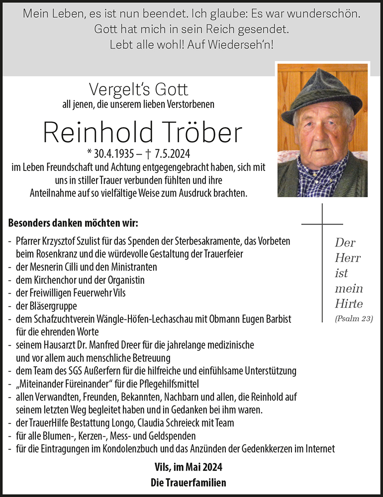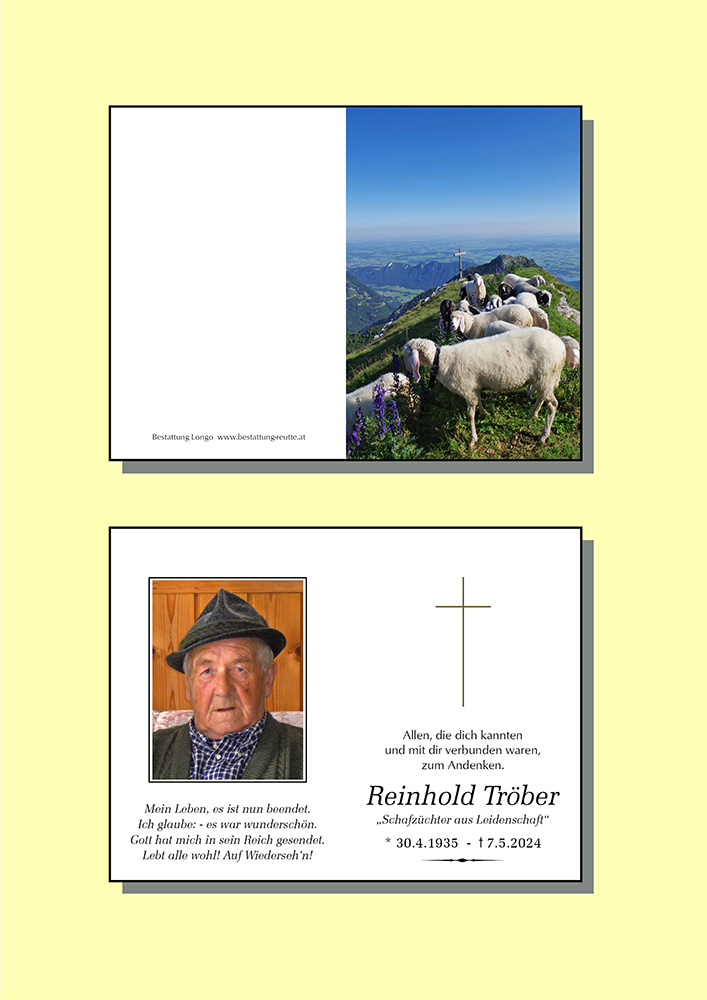 Kondolenzbuch für Reinhold Tröber