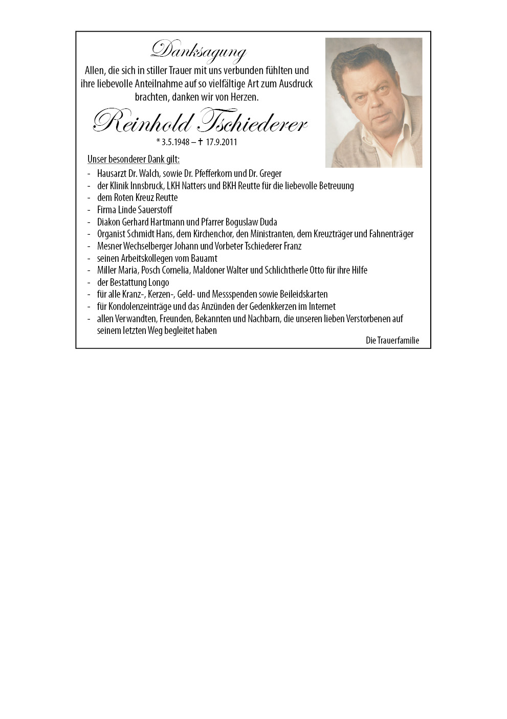 Kondolenzbuch für Reinhold Tschiederer