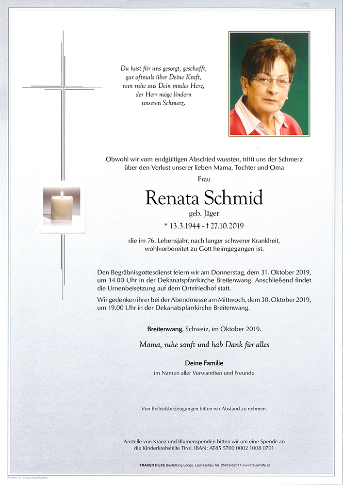 Kondolenzbuch für Renata Schmid