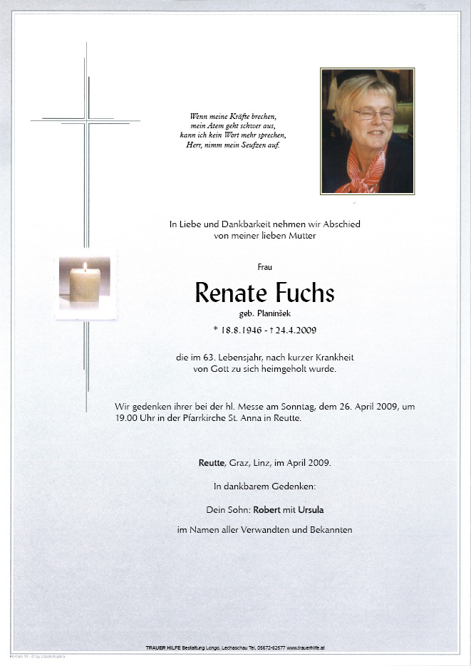 13.12.1901 24.04.2009 Reutte Renate Fuchs Action Parte Gedenkkerzen Kondolenzen Parte Gedenkkerzen Kondolenzen Parte herunterladen Gedenkkerzen für Renate Fuchs 20 Einträge Kerze anzünden Günter & Gitti Vermissen Dich Vermissen Dich Vermissen Dich Vermissen Dich Vermissen Dich Vermissen Dich Vermissen Dich Vermissen Dich Vermissen Dich Vermissen Dich Vermissen Dich Vermissen Dich Vermissen Dich Vermissen Dich Vermissen Dich Ruhe in Frieden Ruhe in Frieden Gitti mit Familie Gitti mit Familie Ihre Gedenkkerze fürRenate Fuchs Ihr Name* Farbe auswählen Ihre Nachricht oder Name* E-Mail-Adresse* Mit dem Klicken auf "Kerze anzünden" erklären Sie sich mit unseren Datenschutzbestimmungen einverstanden. Kondolenzbuch für Renate Fuchs 0 Einträge Kondolenz verfassen Ihr Abschiedsgruß an Renate Fuchs Ihr Name* E-Mail-Adresse* Ihre Nachricht* Mit dem Klicken auf "Gruß absenden" erklären Sie sich mit unseren Datenschutzbestimmungen einverstanden.