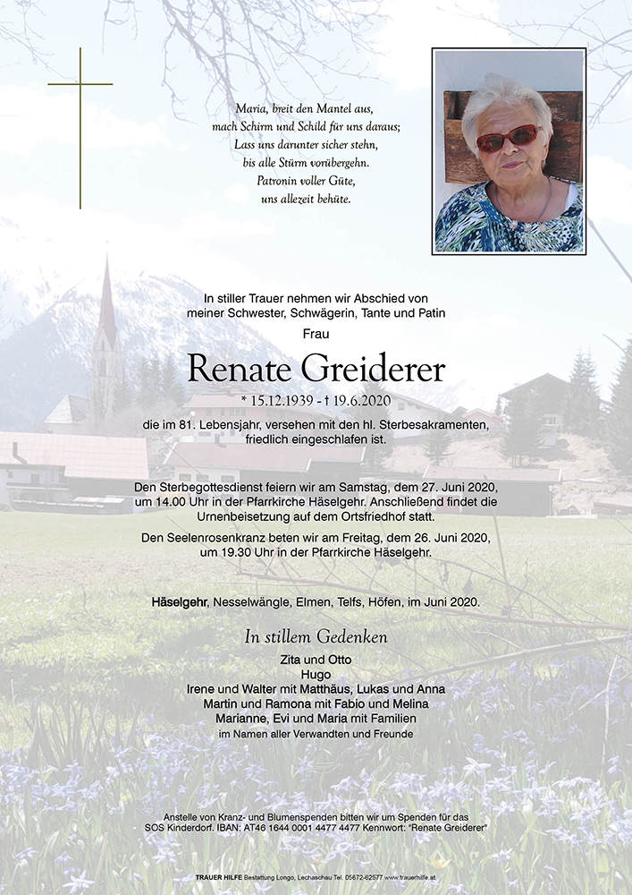 Kondolenzbuch für Renate Greiderer