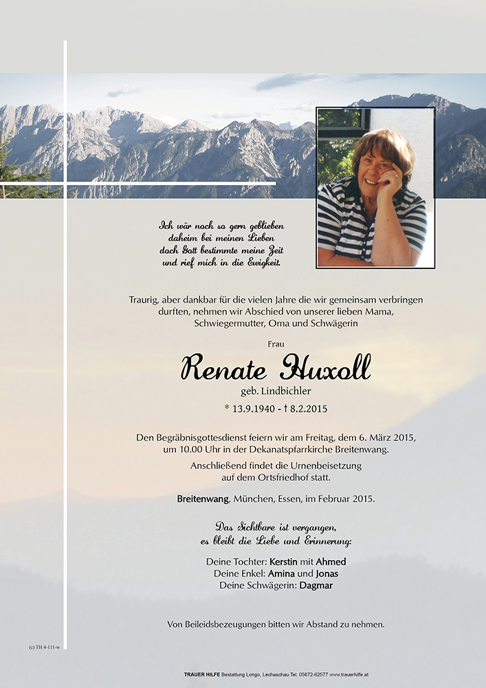 Liebe Kerstin mit Familie! Wir möchten euch unser Mitgefühl und Beileid ausdrücken. Wir werden Renate in guter Erinnerung behalten.