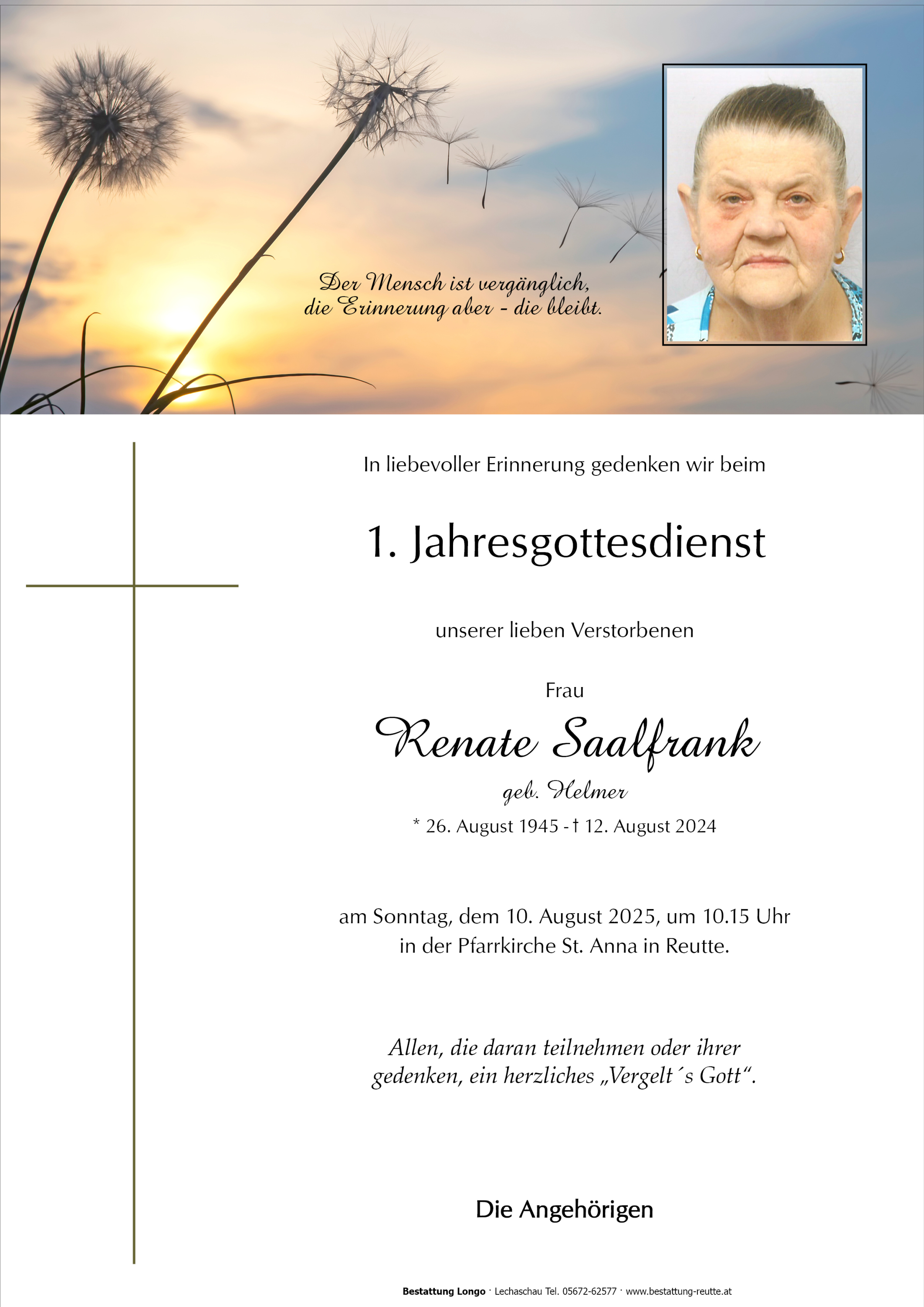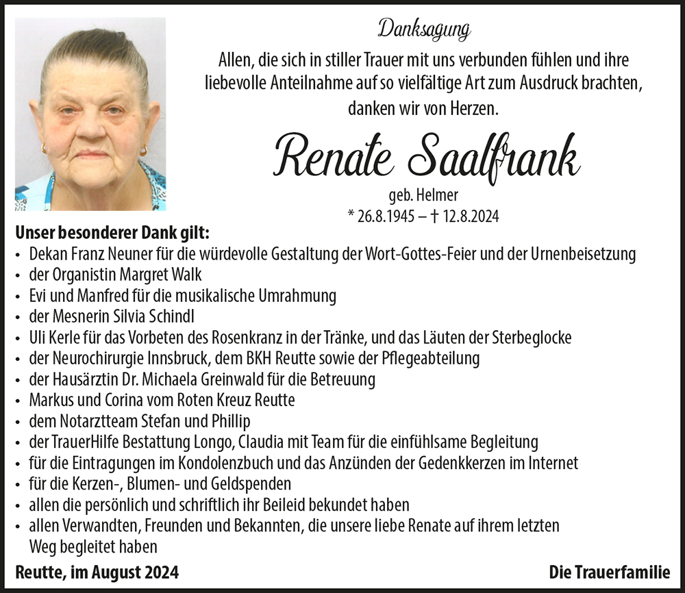Liebe Renate ruhe in Frieden Reinhilde Gratl