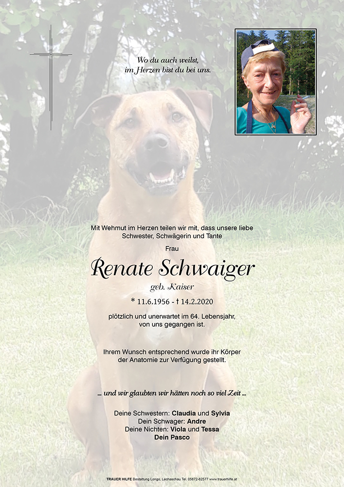 Kondolenzbuch fĂŒr Renate Schwaiger