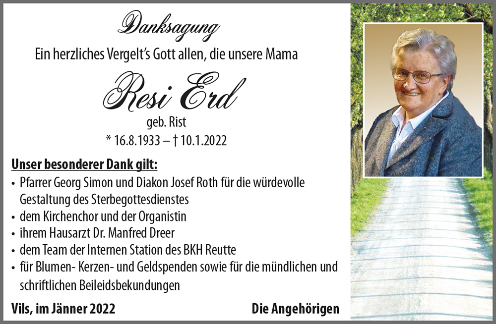 Kondolenzbuch für Resi Erd