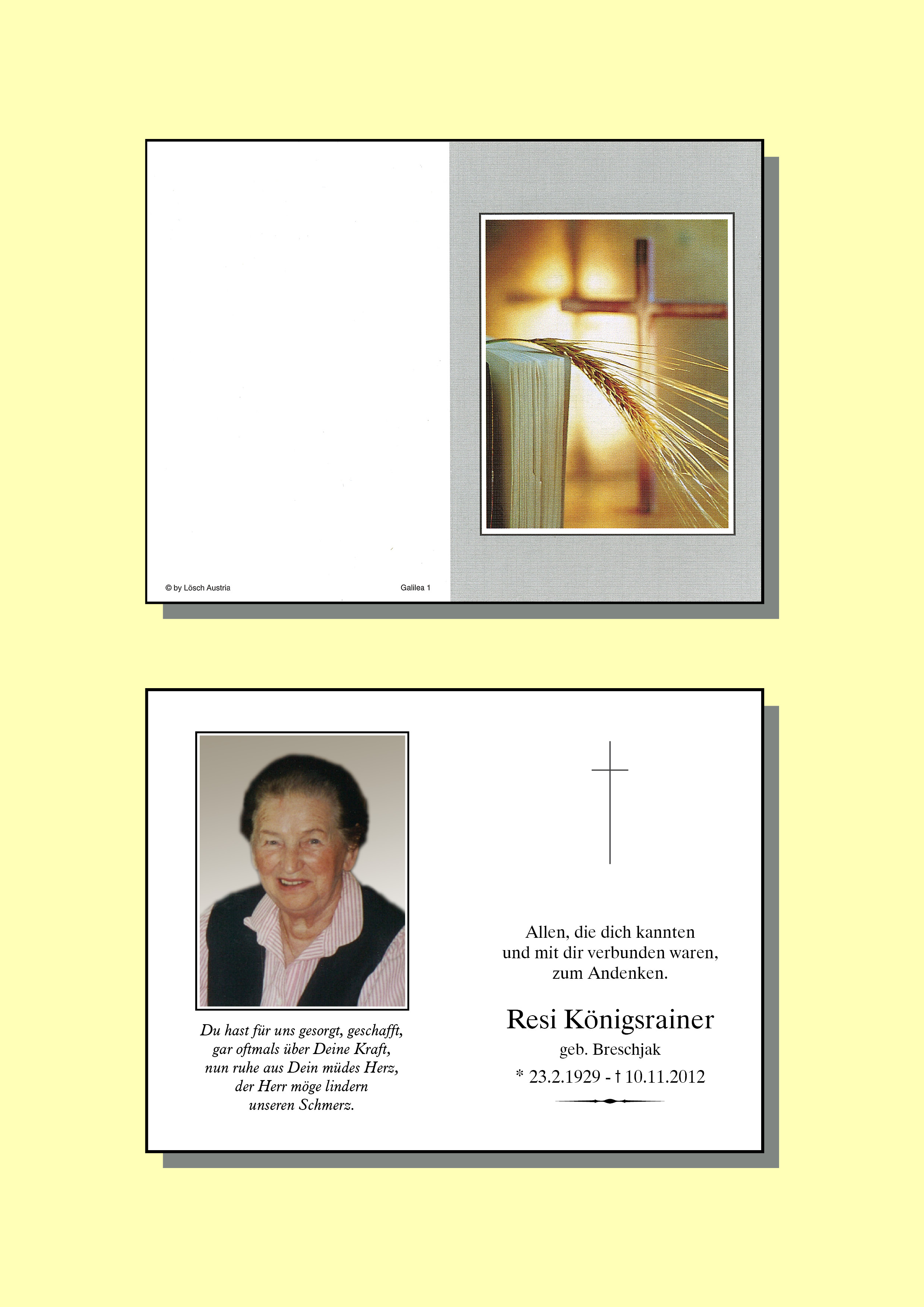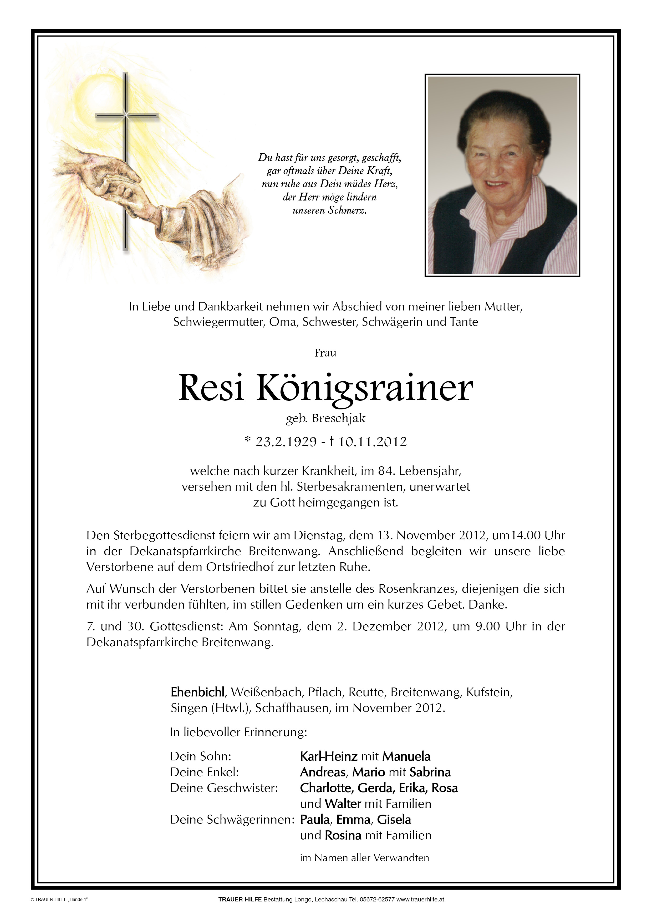 Kondolenzbuch für Resi Königsrainer