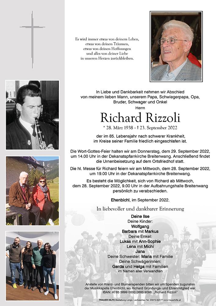 Richard war 1956 maßgeblich an der Gründung der Musikkapelle Ehenbichl beteiligt. Von Beginn an stand er mit Rat und Tat zur Seite.