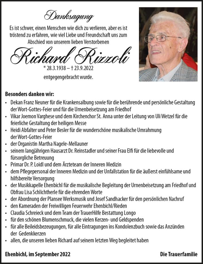 Der Abschied von einem lieben Menschen bringt leider immer viel Trauer und Leid. In unserem Gedächtnis lebt Richard weiter, die Erinnerung spendet Trost und erfüllt mit stiller Hoffnung. Gute Menschen gleichen Sternen. Sie leuchten noch lange nach ihrem erlöschen.
