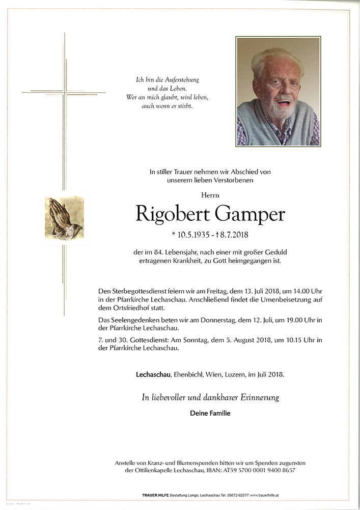 Kondolenzbuch für Rigobert Gamper