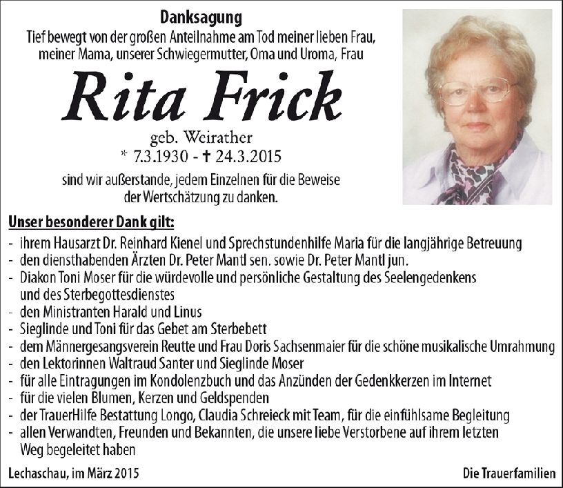 Liebe Trauerfamilie Frick,