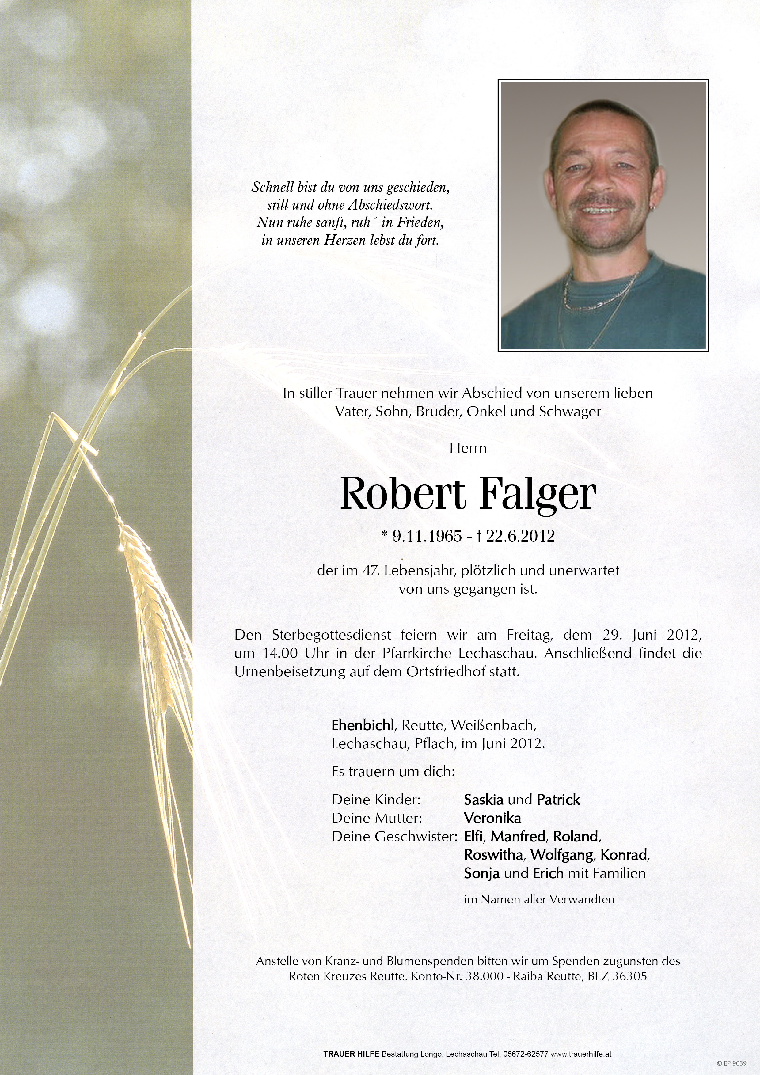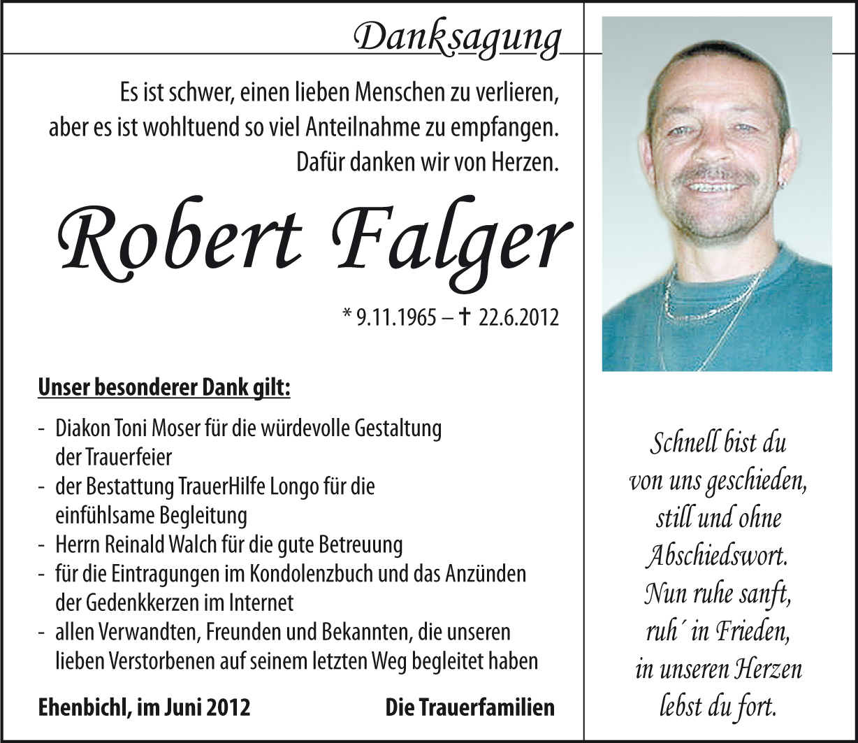 Der gesamten Familie Falger mein herzliches Beileid!