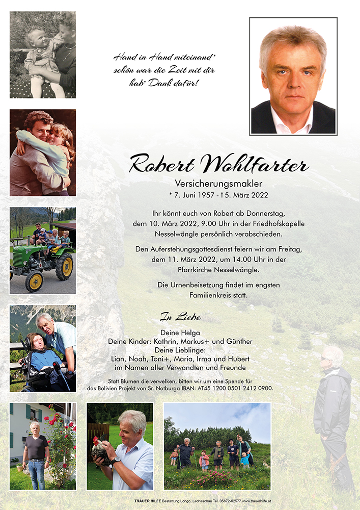Kondolenzbuch für Robert Wohlfarter