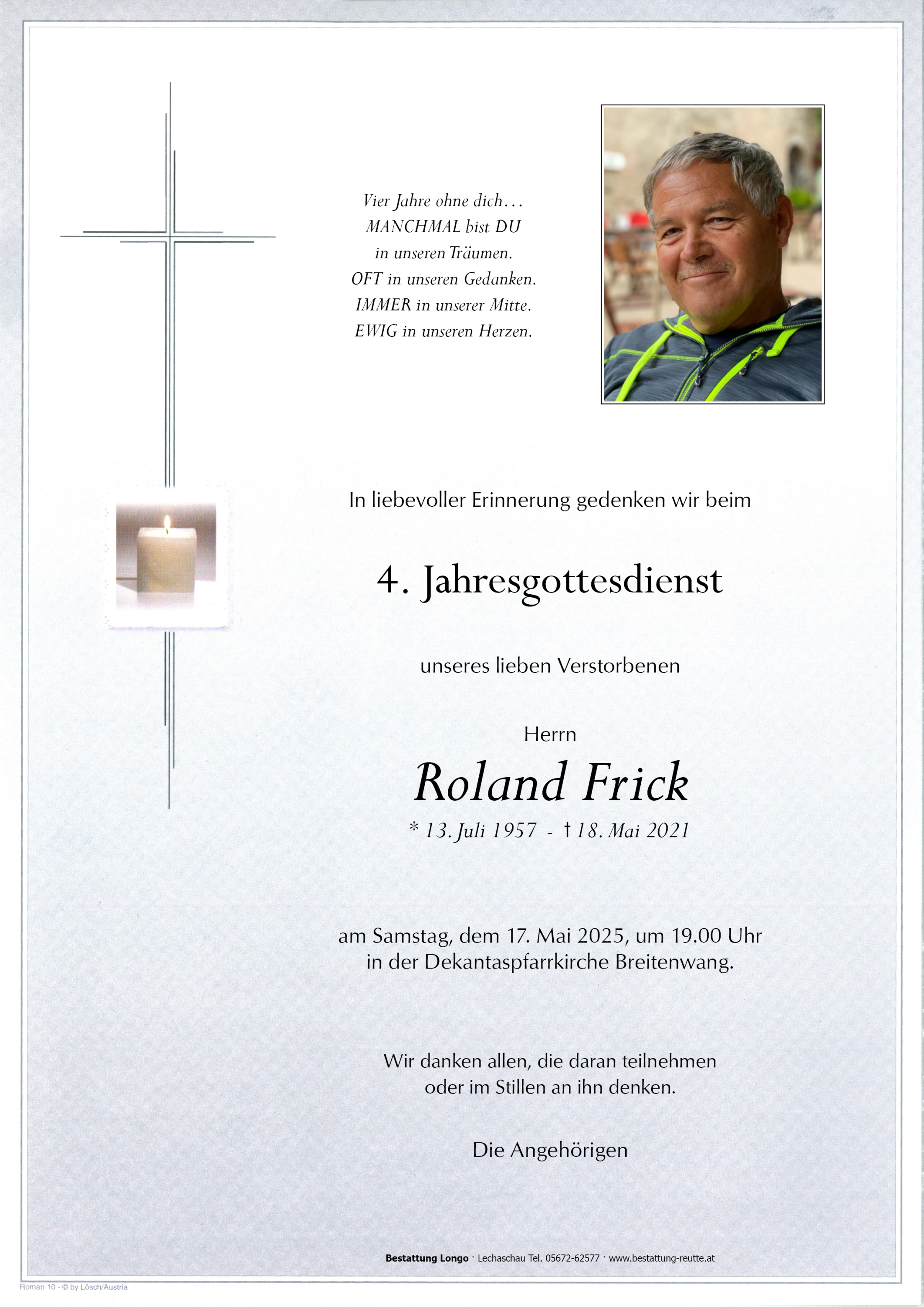 möge der Schmerz über den Tod von Roland euch nicht erdrücken und euch die Erinnerung an die gemeinsame Zeit genügend Kraft für die Zukunft geben.